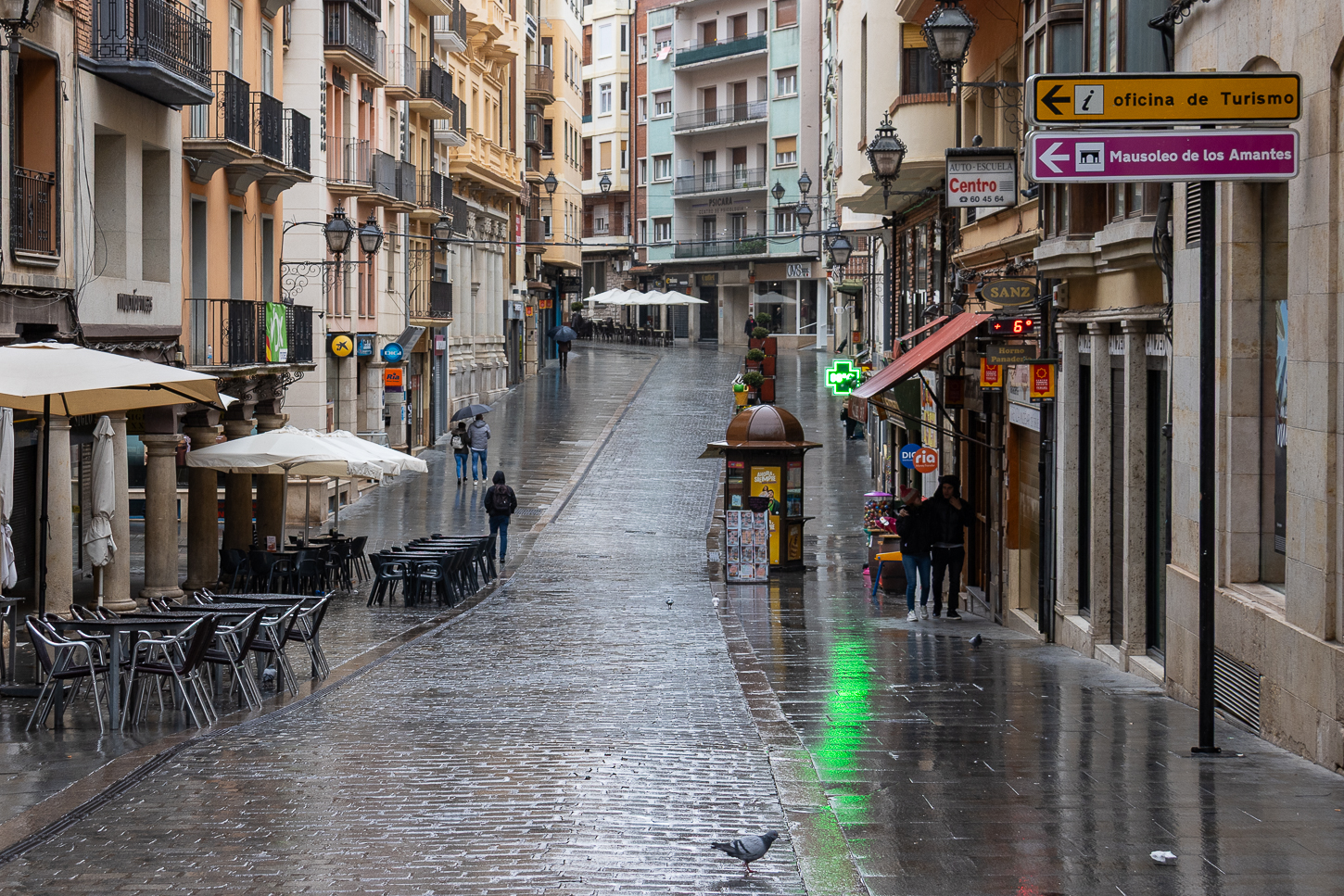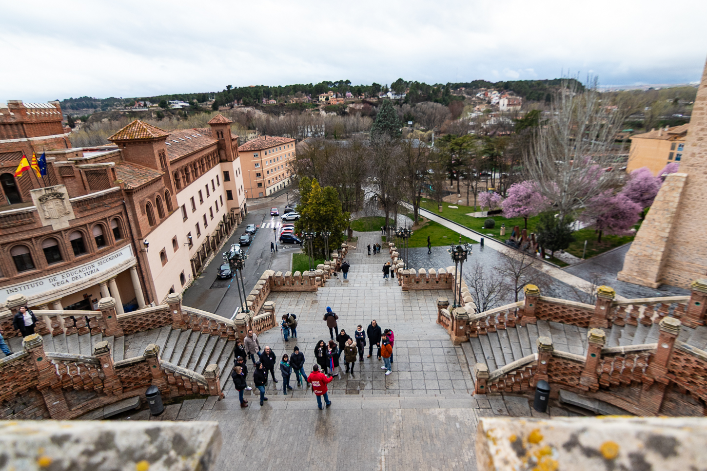 Il cielo si stava aprendo, aveva quasi smesso di piovere, batteva vento ma volevamo passeggiare ancora per Teruel anche se alcune chiese non erano accessibili per le messe in corso mentre alcuni luoghi avrebbero aperto alle 10. Abbiamo così passeggiato incrociando poche persone: erano tutte alla Pasticceria Granier, e come non capirli? Alla Pasticceria siamo riusciti a trovare il nostro tavolino gustandoci dolci e caffè, per poi avviarci alla Scala dell’Ovalo prima di ripartire in macchina diretti a Cuenca.