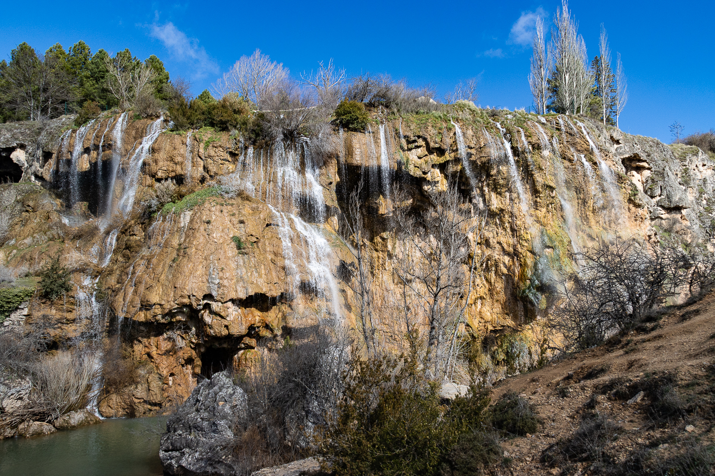 Lasciata Teruel abbiamo costeggiato, da lontano, l’aeroporto alla nostra destra, proseguendo verso Albarracin e fermandoci talvolta per ammirare, gole, torrenti o ruderi di castelli, o per brevi passeggiate come alla Cascata del Rio Fuente del Berro prima ed alle Sorgenti del Tago poi.