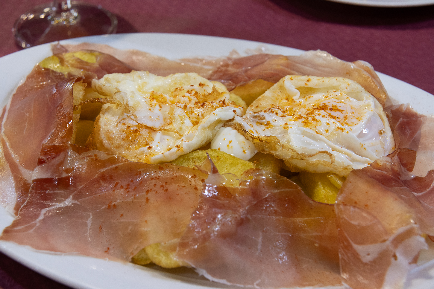 Verso le 20 ci decidiamo a scendere per cenare, ma quando ci propongono un tavolino nel bar, invece che nella sala ristorante, circondati da persone che fumano guardando una rumorosa televisione usciamo; troveremo una situazione simile al Bar Gavilan, ma la proprietaria, evidentemente molto più sveglia, ci prepara un tavolo nella saletta adiacente, vuota e tranquilla e, pur non parlando altre lingue, si sforza di interpretare il mio basico e/o maccheronico spagnolo. Il risultato sarà una gustosa ed originale cena, con la signora cortese e discreta che verificherà con regolarità che tutto vada bene, chiuderò con un ottimo “Natillas”, poi crolleremo sul comodo letto.