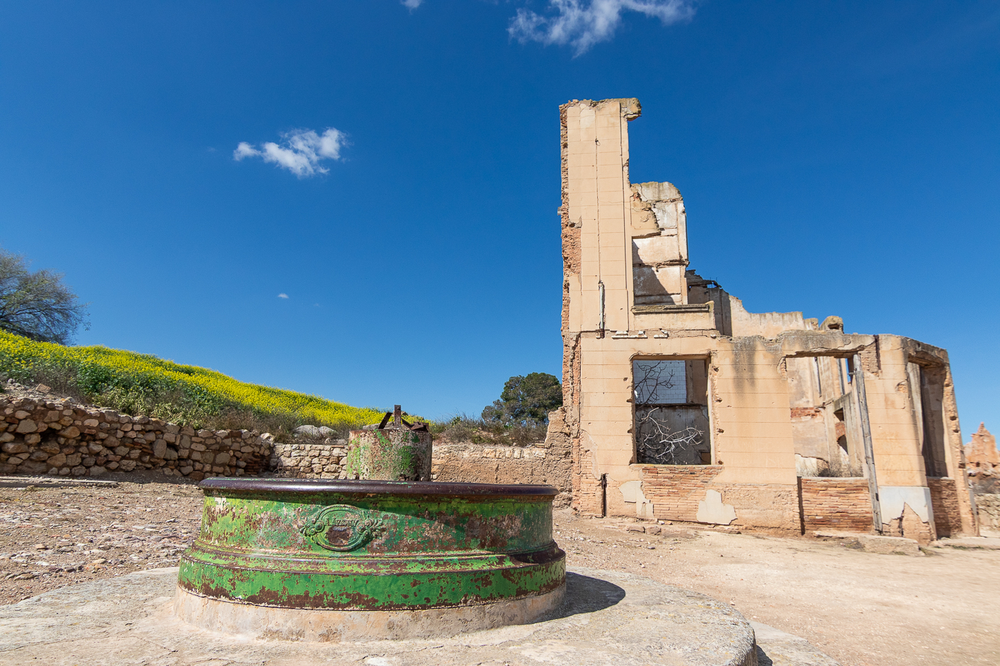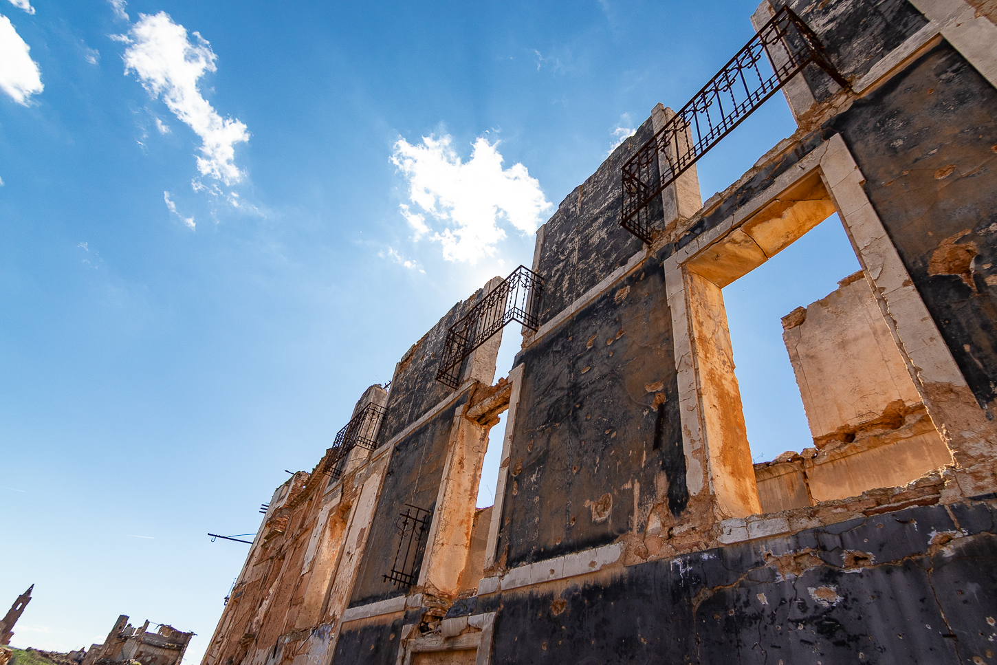 A fine giornata avremo percorso 330km fermandoci per il secondo Toro presso Calatayud, poi ad El Frasno dopo aver sbagliato strada mentre il navigatore si era spento e scoprendo altre graziose località come Villanueva de Huerva e Fuendetodos, il paese natale di Francisco Goya, poi ancora qualche sosta fotografica per i paesaggi prima di raggiungere Belchite dove arriviamo attorno alle 15.40.
