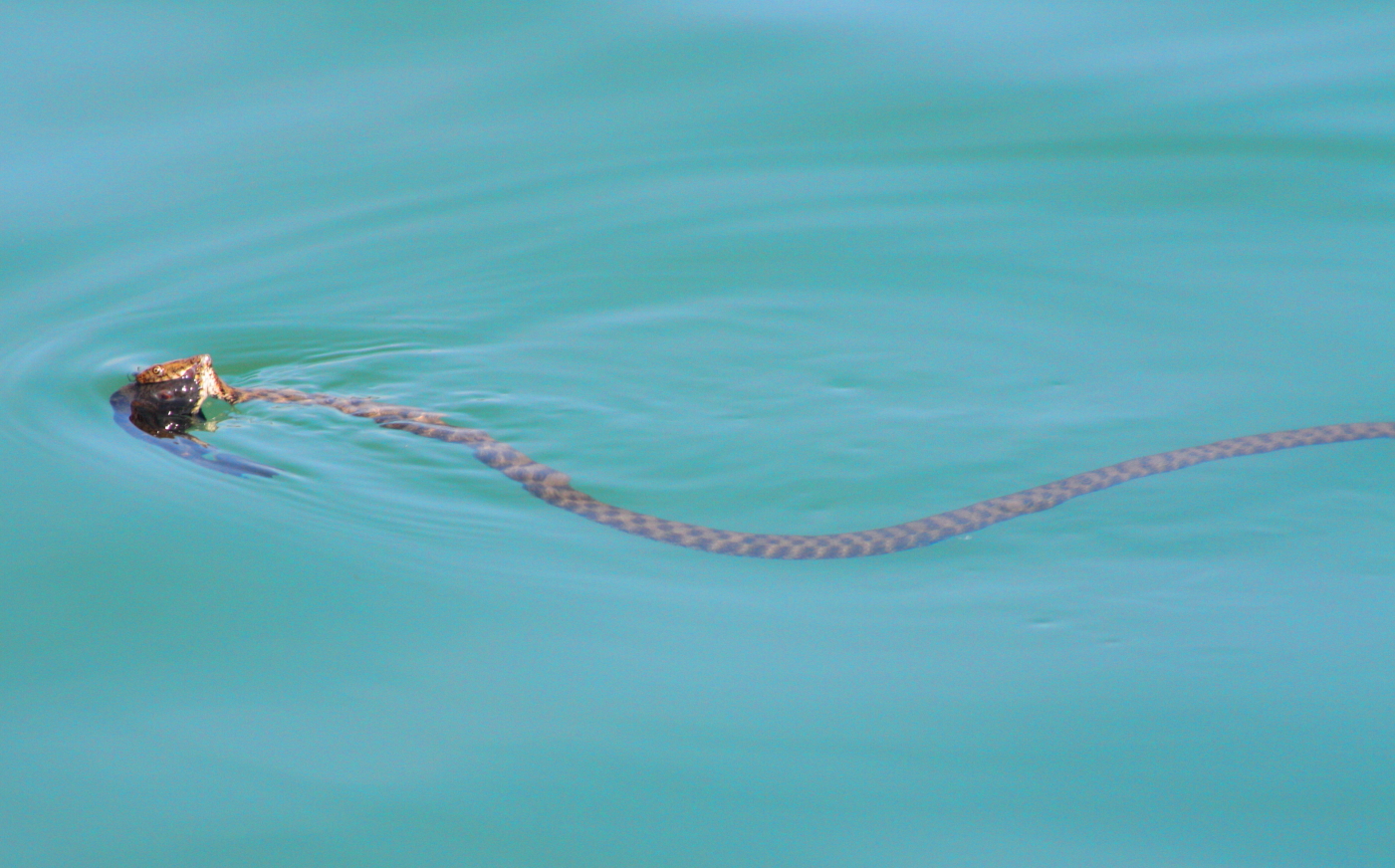 Non sono un erpetologo, conosco in teoria alcune differenze tra Vipere ed il resto del genere nazionale, quali la forma dell’occhio, la lunghezza della coda…. Ma quando mi trovo a tu per tu, senza preavviso non riesco a concentrarmi su questi particolari, che percepisco solo quando ho smesso battere i denti, e, se quel essere affusolato è ancora lì, allora riesco ad avvicinarmi. Ne ho visti e fotografati alcuni, noti talvolta solo in linea generale, per altri ho chiesto informazioni in seguito. Quando ho la possibilità di osservarli ci provo: Il reptilarium di Klagenfurt e lo Zoo di Vienna li ho già provati. In un paio di occasioni dei “cuccioli” di “Carbone” sono venuti a farci visita in garage, a parte lo spavento iniziale, una volta realizzato di cosa si trattasse, sono sempre riuscito ad indicargli la strada per il giardino. La cosa certa è che, una volta tranquillizzato ammiro con piacere le forme ed i movimenti di questi animali che talvolta incontro nel corso di alcune passeggiate nella Bassa Friulana. Nelle fotografie alcuni incontri che ho potuto “immortalare”, mi piace in particolare quella della Natrix che nuota con al rana in bocca. Alcuni “meeting” li ho avuti in Austria mentre in Marocco mi sono invece mosso con più attenzione ed in una occasione assoldando una “Guardia del Corpo”.