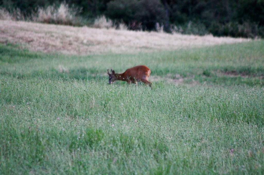 Pochi mesi fa, uscendo da Serre di Rapolano (SI), c’era un Capriolo nel fosso, fermo, con la testa alzata e, fermatomi, ho constatato che era stato investito, certamente da ore: aveva perso un Corno nell’urto, un ematoma gli impediva di aprire quell’occhio, leggendo i segni nell’erba aveva certamente passato la notte trascinandosi nel fosso; una signora che si era fermata con noi ha chiamato i vigili che sono arrivati alcuni minuti dopo, non so che fine ha fatto ma lo immagino ☹ .   So invece che cosa avrei voluto fare al “vecchietto” che in Ape-Car  è passato avanti ed indietro alcune volte, per poi fermarsi a chiederci se avevamo visto un Capriolo in giro, è ripartito subito, senza piu ripassare, quando gli ho detto che avevavo chiamato i vigili. Era un bel maschio di circa 3 anni, veramente bello, parlo del Capriolo. Questi sono i casi in cui non ho alcun piacere di incontrarli, vado invece spesso a cercarli, armato di zoom 70/300mm e macchina digitale, talvolta appostandomi a favore di vento, le foto non hanno importanza, il bello e vederli; alcuni anni addietro, andando spesso durante l’inverno, una femmina si era forse abituata alla mia presenza e mi permetteva di avvicinarla ad una distanza inferiore, talvolta restavamo a guardarci a vicenda mentre continuava a brucare. Questa è la caccia che preferisco