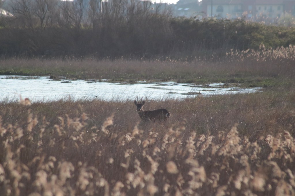 L’incontro ravvicinato con una coppia di cervi lo ho avuto invece nel 2009 in provincia di Pordenono, bellissima esperienza. Mentre mi “nascondevo” per fare da cavia in una ricerca simulata con Unità Cinofile, aggirando la zona di ricerca, facendo attenzione alla direzione del vento per raggiungere un nascondiglio adatto, ci fù un movimento brusco a pochi metri da me: un grosso animale spaventato scappava mostrandomi solo un gran “culo” chiaro ed una testa senza corna; una frazione di secondo dopo, quello che vedevo era una gran testa con due grandi occhi e dei bellissimi palchi, a 4/5 metri da me, ci guardammo per alcuni secondi, poi, educatamente, ci avviammo con estrema calma in direzioni opposte. Evidentemente ero arrivato veramente a favore di vento.