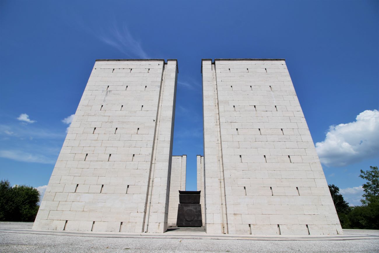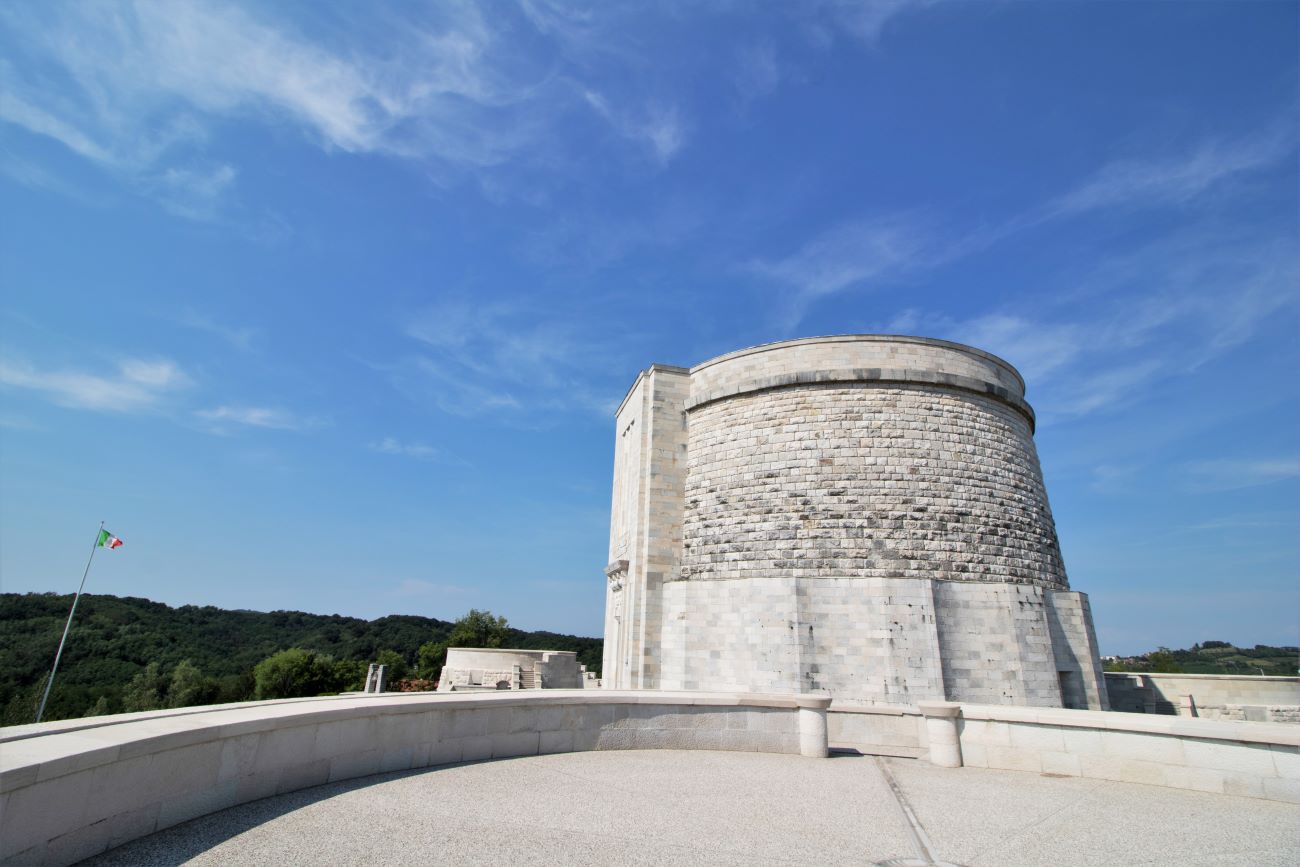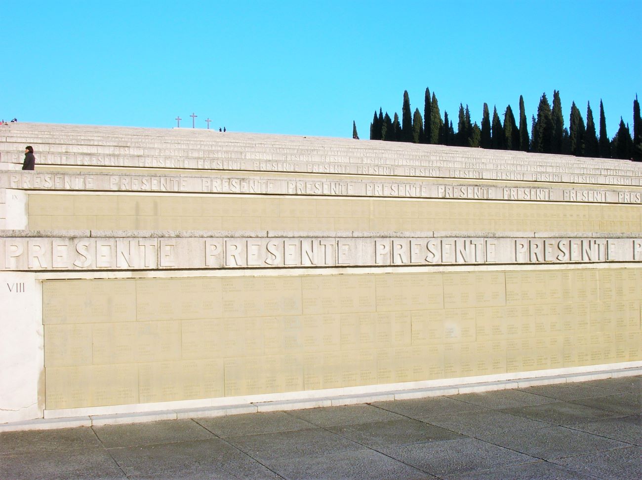 OSLAVIA Una struttura circolare, un Ossario in Marmo bianco della zona. Suddivisa su più livelli. Conserva le “spoglie” di oltre 50mila caduti sia Italiani che del “blocco” opposto. Tutti ” ..avevano lo stesso identico umore, ma la divisa di un’altro colore.. ” per ricordare i versi di un poeta mio omonimo.