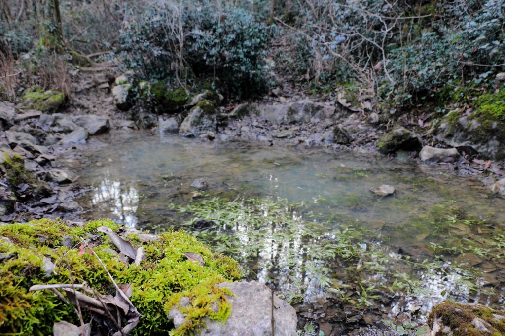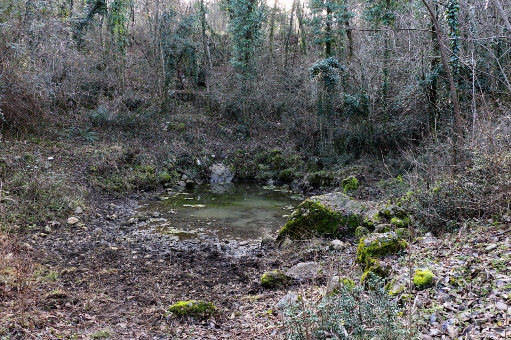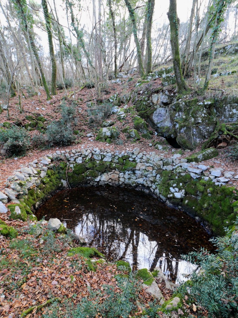 Quella del 6 gennaio era stata una gradevole sgambata, così piacevole che tornammo nuovamente due settimane più tardi, con i miei persistenti limiti al ginocchio, ma questa volta con scarponi. Ci tormentava una curiosità: cosa sono gli STAGNI DI MICOLI? Quel giorno li scoprimmo. Tre pozze naturali che raccolgono acqua piovana che in passato venivano utilizzati come abbeveratoi e lavatoi. Lo apprendemmo da un cartello informativo e lo constatammo di persona raggiungendoli uno ad uno. I primi due, più vicini al sentiero sono naturali a tal punto che le tracce di animale selvatico nel fango delle pozze abbondano. In quei momenti, mentre osservavamo gli stagni ho avuto la sensazione che, alcuni animali in arrivo ci avessero sentiti e si fossero fermati a distanza, osservandoci, mi parse di averli sentiti oltretutto l’aria risaliva in quella direzione. Per raggiungere il stagno terzo si prosegue ancora 100m lungo una traccia di sentiero in leggera discesa, questo è antropizzato: è stato rinforzato sui bordi con rocce, probabilmente per proteggerlo da smottamenti che ne avrebbero potuto alterare la qualità dell’acqua. Una sana curiosità porta spesso a scoprire ambienti nuovi ed interessanti. Quel giorno camminammo di meno, percorrendo circa 5km in saliscendi lungo un percorso ad anello attorno all’area degli Stagni di Micoli. Raggiungemmo il sentiero che scende all’omonimo paese, ma preferimmo non percorrerlo per rientrare senza forzare il mio ginocchio. Alcune settimane più tardi si è bloccato il ginocchio, e mentre scrivo sono in attesa di effettuare alcuni esami per un probabile problema di menisco.