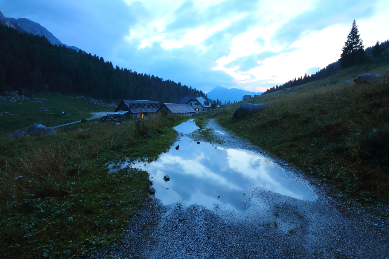 Nel 2019 come spesso ci capita in estate, desideravamo una pausa dalla calura ed umidità della laguna. Cercando ispirazioni per nuove destinazioni, ci ricordammo di quella malga e di quella sella dove da 20 anni non eravamo più tornati. Anche questa volta ci fermammo 2 notti, dal 19 al 21 agosto, questa volta solo in 2: i bipedi. Arrivammo nel tardo pomeriggio, risalendo con l’Evalia nella quale avevo caricato anche la mia bicicletta per provarla in salita dopo aver sostituito catena e pignoni. Appena Il tempo di percorrere pochi km, poi rientrammo sparati poco prima di uno scroscio di pioggia che terminò per ora di cena permettendoci di uscire per una passeggiata nel bosco. Passeggiammo al crepuscolo in ambiente deserto frequentato da Salamandre e da una Cerva che vidi troppo tardi per riuscire a fotografarla.