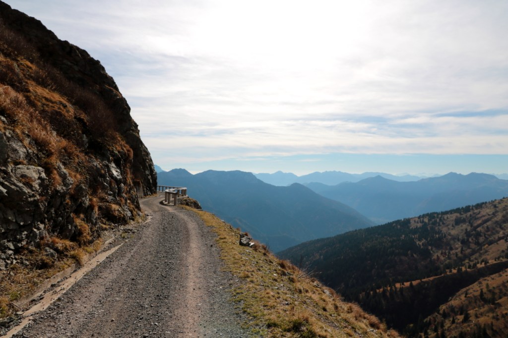 La strada che porta a Valdajer da quel punto si sdoppia in due stradine una asfaltata ed una carrareccia, la monetina decise per la sinistra e così fù, era la carrareccia che conduce al Lago Dimon. Mi piace guidare, in ogni condizione e situazione, ma quella strada potei percorrerla solo per pochi km poi decisi di posteggire in uno spiazzo per proseguire a piedi, non per molto dato che era già pomeriggio avanzato e che al lago mancavano ancora un paio di km. Avevamo comunque nelle gambe la camminata della mattina. Nonostante la curiosità di vedere il lago decidemmo di scendere e di “riordinare le idee” rifocillandoci all’osteria AL CAMOSCIO di Ligosullo, con ottimo risultato.