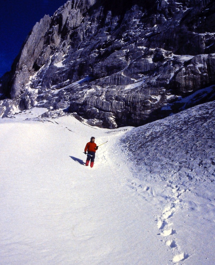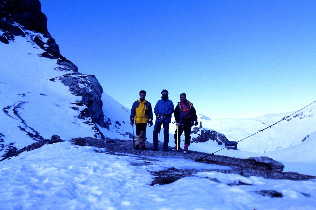 Da quella volta sono tornato al Volaia diverse volte, in stagioni diverse, con persone diverse, in tre occasioni in “solitaria”. Con Gianni prendemmo il “vizio” di ripetere l’esperienza ogni primo sabato dell’anno, anche se durò solo alcuni anni, ed il primo sabato dell’anno cade sempre ad inizio gennaio e per uno come me che preferisce il freddo e la neve, al caldo ed alle spiagge era un toccasana, oltretutto in inverno non si rischia di incontrare serpenti. In quasi tutte le occasioni in cui sono salito ho sempre raggiunto almeno il passo, solo due volte ho dovuto rinunciare. La prima “rinuncia” proprio con Gianni, l’ultima volta che tentammo il “Ruggente Gennaio”. Era una splendida giornata di sole, ma con un fortissimo vento. Rinunciammo dopo essere arrivati al pianoro subito sotto al rifugio Lambertenghi, Il vento mi aveva sbilanciato due volte ed in una avevo dovuto fare un salto per non perdere l’equilibrio e ricadere in piedi e nella concitazione un rampone mi aveva tagliato una ghetta; alla pausa successiva Gianni si era tolto i guanti per pulire gli occhiali, ma poi non riusciva più a rimetterli mentre gli occhiali si erano appannati. A quel punto decidemmo che una pastasciutta al rifugio Tolazzi non sarebbe stata una sconfitta, bensì un premio! In un a seconda occasione rinunciai per mia “debolezza” fermandomi a quota 1650 senza neanche aver raggiunto la neve, era la primavera del 1998.