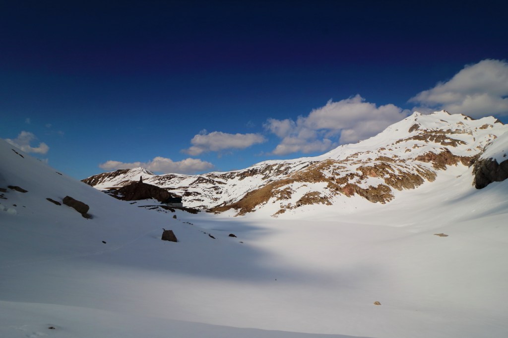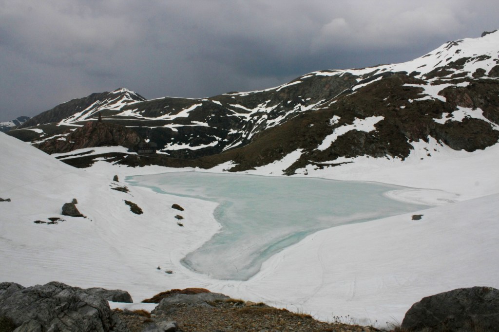 Nel 2011 il lunedì di Pasqua cadeva il 25 aprile, salimmo su neve compatta con una bella temperatura fresca. Assunta ha spesso buone ispirazioni ma non sempre idonee agli zaini ed escursioni, lo avevo notato a Bahktapur, in Nepal, 10 anni prima ed ancor prima la volta che nei pressi di Valdajer riusci ad apparecchiare un tronco d’albero con tovaglia per il picnic; quel giorno del 2011 riuscì a stipare una Colomba intera ed una piccola bottiglia di spumante, lo scoprii al termine della salita. Fu una bellissima giornata: nonostante la neve raggiungemmo il passo dove trovammo due ragazzi con i quali ci scambiammo gli auguri e la colomba, loro contraccambiarono condividendo il loro Uovo di Pasqua. Anche il lago fu stupito del nostro arrivo e ci salutò interrompendo il silenzio assordante del pomeriggio per emettere dapprima alcuni fiebili scricchiolii poi un tonfo secco che riecheggiò tra le montagne: la superficie del lago ghiacciato si era spezzata e si era leggermente abbassata.