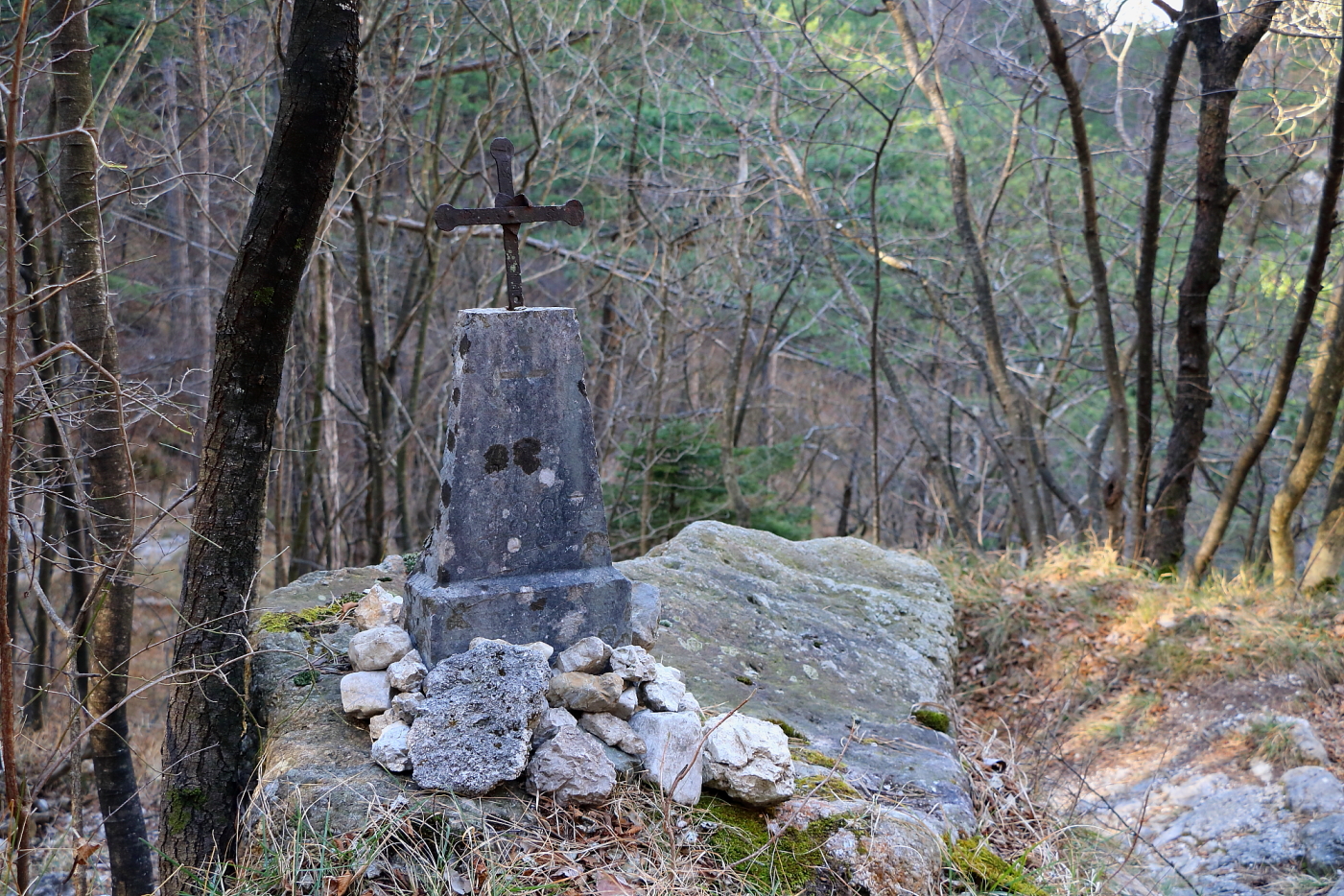 La sosta è stata lunga, con tempo per divagazioni nelle vicinanze ed il tempo dedicato è stato notevolmente superiore al previsto e preso atto di ciò abbiamo continuato in direzione di Moggessa, scendendo il sentiero che, in alcuni tratti, appariva peggiore del tratto precedente. Molto particolari alcune croci poste in questo tratto a memoria di vecchi abitanti del luogo ed abbiamo proseguito sino ad un punto in cui il sentiero appariva meno consistente e leggermente franato, così, anche data l’ora tarda, abbiamo deciso di rientrare per raggiungere la macchina verso l’ora del tramonto. Mi è stato detto che esiste un secondo percorso, più lungo ma più gradevole che dovrebbe risalire partendo da Campiolo, in una prossima occasione lo prenderò in considerazione come alternativa oppure, rifacendo il primo percorso, eviterò di dedicare troppo tempo al paesaggio
