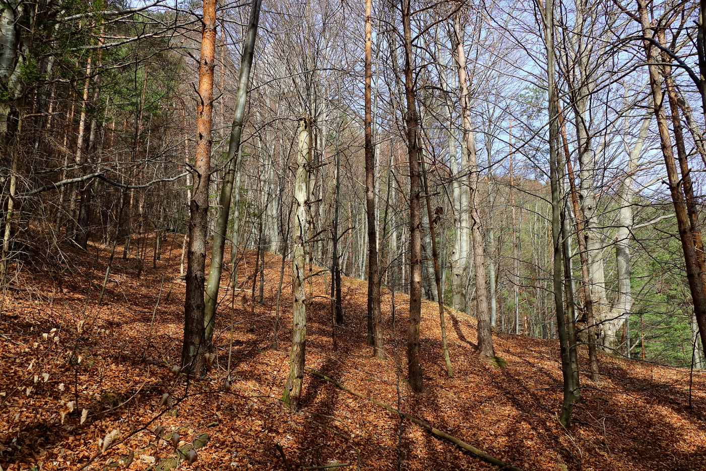 Giunti al borgo superiore, volendo proseguire verso il posteggio della Val Alba ci è stato suggerito di attraversare il Bosco seguendo alcuni sentieri per non tornare sui nostri passi: Faggi e Faggi sopra ed attorno a noi, foglie sotto di noi. Ad un certo punto con GPS e mappa digitale abbiamo deciso di risalire direttamente ed in 200m di percorso, 40 di risalita, siamo sbucati sulla strada, stretta ma perfettamente asfaltata, per poi proseguire lungo questa, ma con una piccola deviazione sino i ruderi di “Casa Foramiz” proprio dei ruderi, ma in un punto gradevole. Da casa Foramiz abbiamo poi proseguito per pochi minuti sino a raggiungere al posteggio e rilassarci ammirando il panorama e conversando con un escursionista del luogo che ci ha spiegato le possibilità di escursioni nella zona.