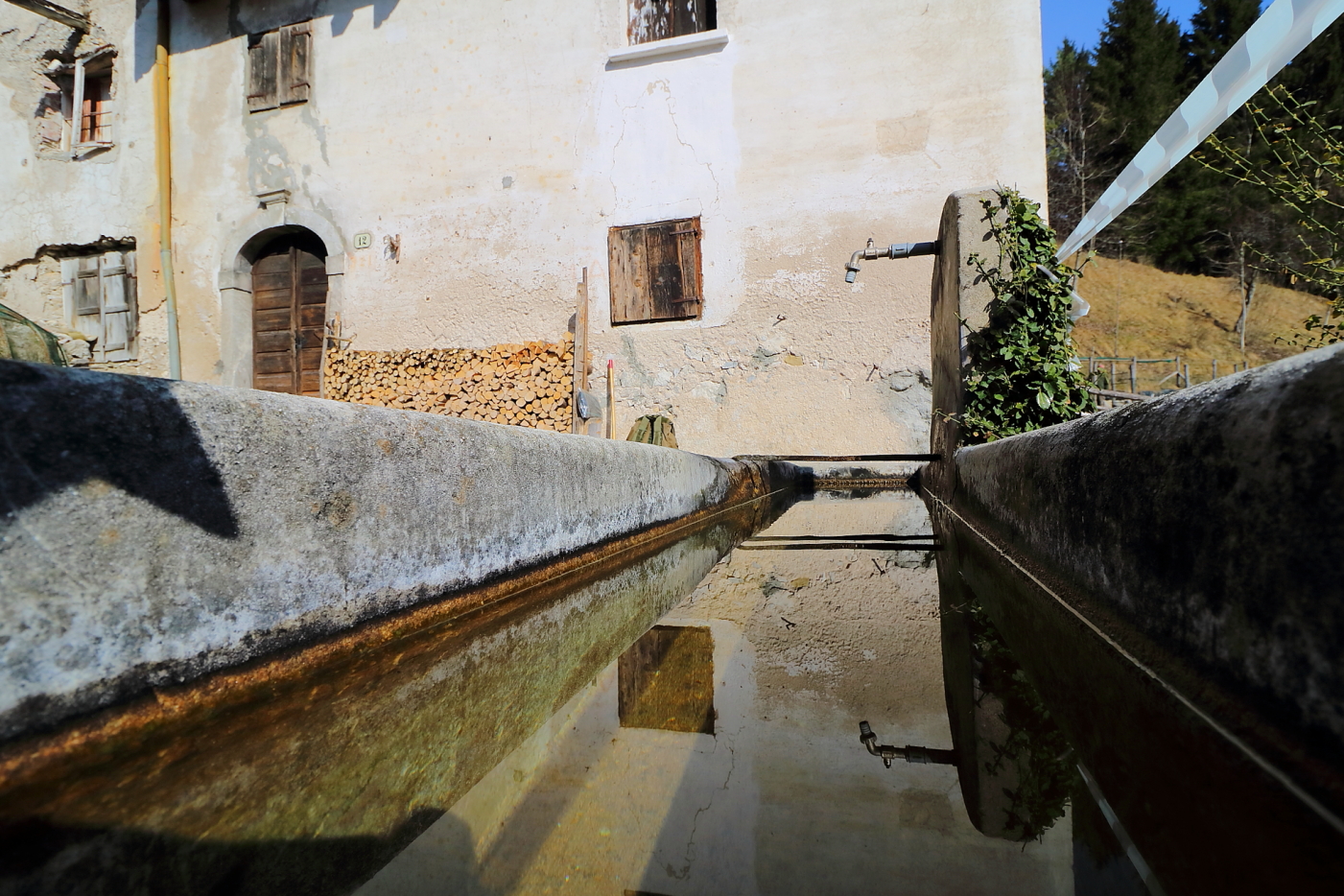 Dapprima si arriva a Riulade di Sotto, poi, salendo un pendio erboso ed un piccolo sentiero in pochi minuti si raggiunge anche Riulade di Sopra; in entrambi i borghi abbiamo incontrato pochissime persone, ma disponibili a dare indicazioni. In entrambi anche fontanelle con acqua corrente. Era il 3 marzo 2019 non c’èra neve.