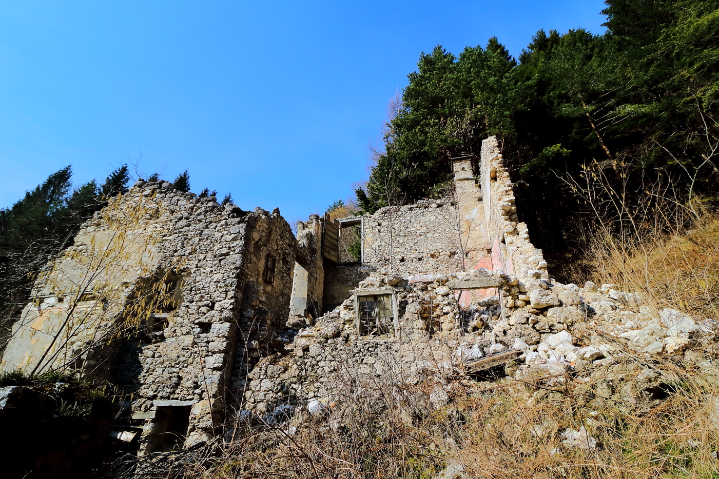 VERSO MOGGESSA Ho spesso sentito parlare di alcune località “abbandonate” dopo il Terremoto del 1976. Talvolta, sia in Italia che all’estero mi sono trovato a visitare borghi o fabbriche abbandonate per diversi motivi, avevo sentito parlare di Moggessa cosi quel 24 febbraio 2019, pur non sapendo quale fosse il percorso migliore raggiungemmo Moggio Udinese per una passeggiata, che poi la destinazione fosse proprio Moggessa era secondario: ci bastava passeggiare un pò in mezzo alla Natura, tantopiù che era una splendida e calda giornata di Febbraio e da molto non pioveva o nevicava. Lasciata la Macchina in paese, nei pressi di un bel baretto, il Berlina Cafee&Bar siamo partiti lungo via Riu proseguendo oltre e notando come la macchina avrebbe potuto essere lasciata al termine di questo tratto in un ampio spazio ai bordi del torrente. Da questo spazio, nei pressi dell’imbocco di una galleria di servizio del gasdotto, incominciava il sentiero che costeggia il torrente risaliendo nel bosco, ma offrendo talvolta splendidi panorami. Panorami che ci hanno tenuti in contemplazione in diverse occasioni.