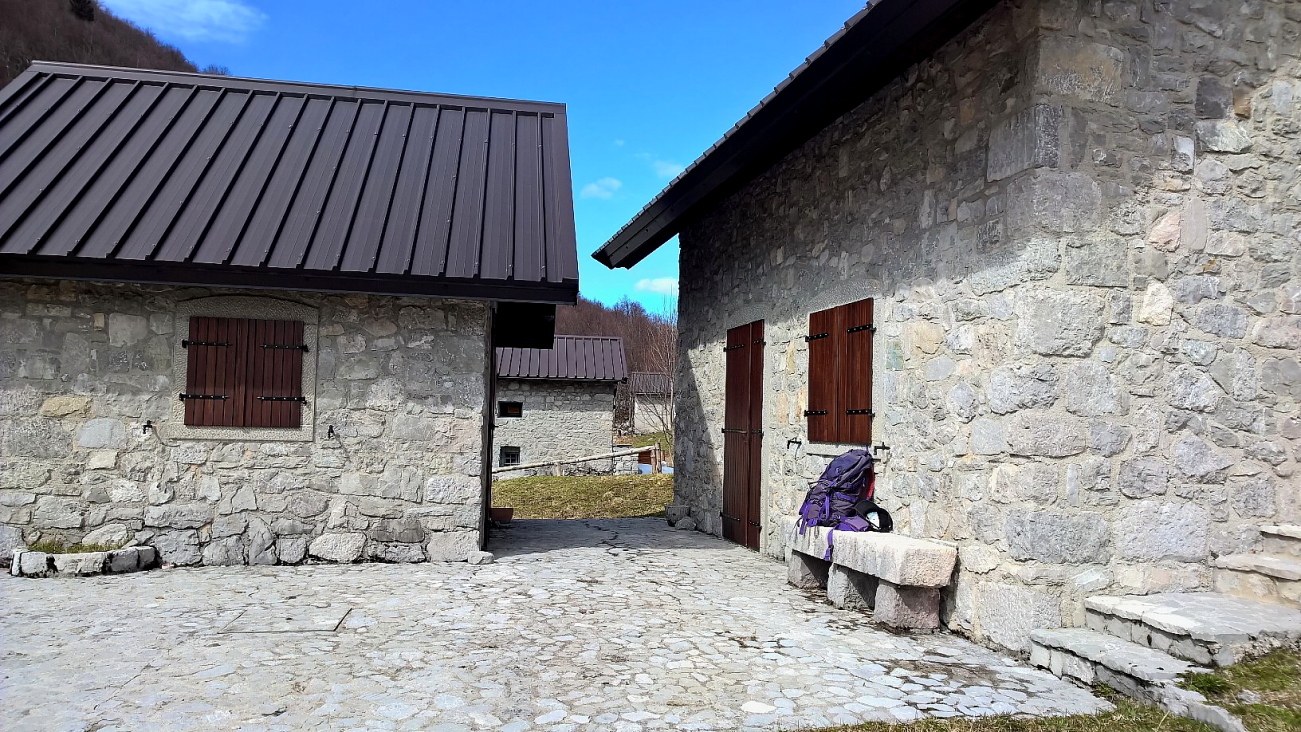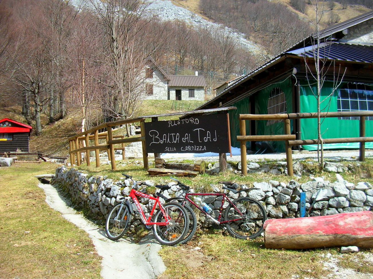L’ho scoperta il giorno di Pasqua del 2015. Ci eravamo passati due settimane prima e trovata la strada chiusa avevamo proseguito verso la Slovenia dopo aver visto l’abitato di Uccea. Proprio la strada chiusa ci aveva suggerito l’idea prendendo la forma di Mountain Bike così, vista la nostra abitudine di festeggiare Natale e Pasqua in modo “personalizzato” avevamo raggiunto Uccea, posteggiato e scaricato le MTB per proseguire con queste. Il nostro stato di “lagunari” e le corone consumate della mia bicicletta sulla quale la catena saltava appena forzavo più del solito ci avevano fermati dopo 3km, quando ne mancavano ancora 6 alla meta! Dicono che la fortuna aiuta gli “audaci” (…talvolta aiuta anche gli incoscienti): quel giorno la fortuna assunse la forma Pick-Up. Il guidatore ci propose un passaggio: lui aveva l’autorizzazione a salire così le MTB ed io trovammo posto nel pianale, Assunta si accomodò in cabina. Indossai il secondo smanicato e la giacca antivento ma quei 6km furono gelidi e ventosi, il raffreddore arrivò puntuale il giorno dopo, FORTE! Assunta soffrì il caldo in cabina. Il piacere di arrivare alla sella e sbranare i nostri panini dopo aver pedalato e camminato nei dintorni senza altri umani in giro fu grande. La discesa fu divertente e veloce, almeno per me. il raffreddore fu fastidioso e lungo a passare. Ci avevamo preso gusto così le salite le abbiamo ripetute, sia a piedi che in MTB a Pasqua del 2017 quando a fermarci fu la troppa neve sulla strada a soli 4km dalla sella. Nel marzo 2018 ci arrivammo, ma quella volta avevamo optato per una lunga camminata. Con la strada chiusa così funziona. Con la strada aperta è diverso: molti salgono in bicicletta, altrettanti in moto, altri in macchina per poi “aggirarsi” a piedi nei dintorni della sella. Quasi tutti fanno tappa nei due locali che in estate sono aperti: Baita al Tai e Baita Botton D’Oro.