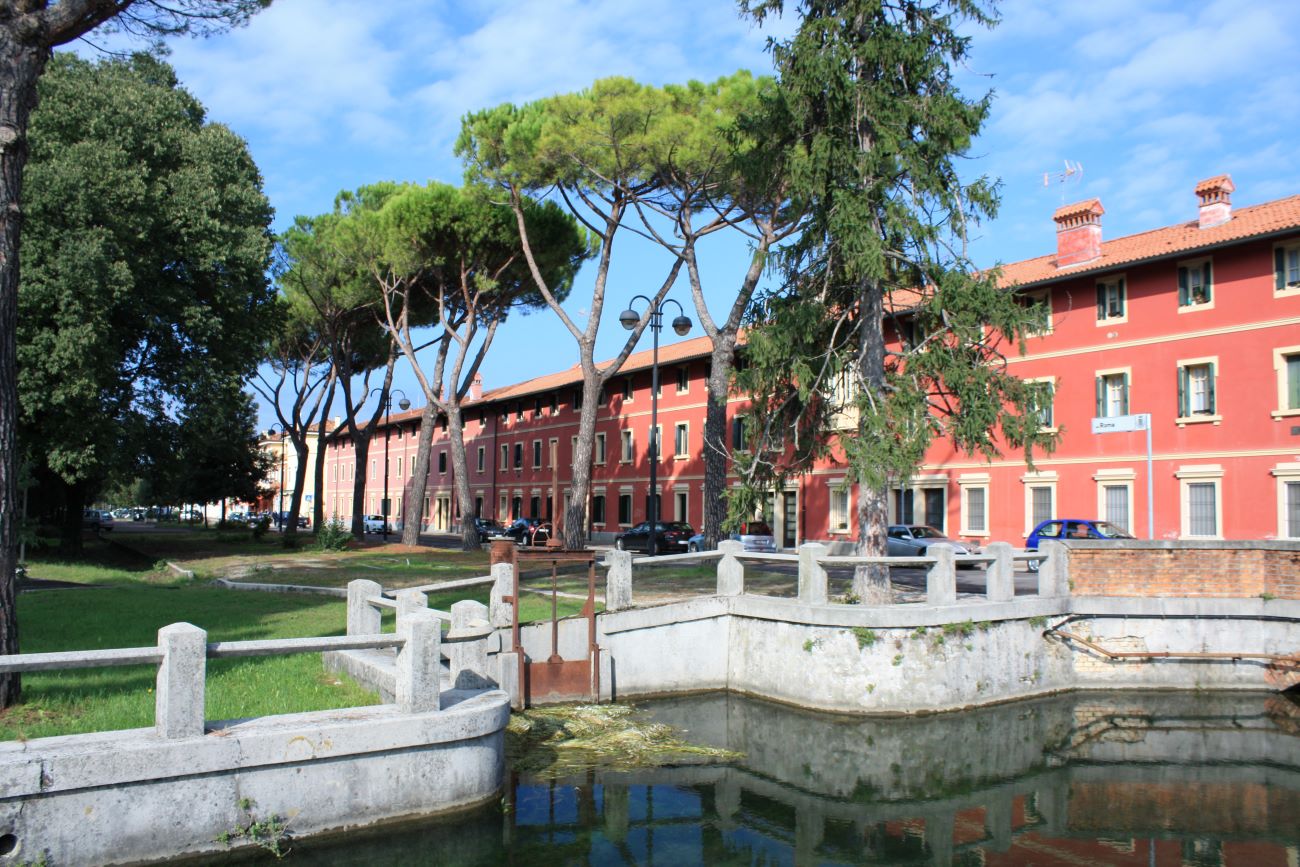 Torviscosa, lo richiama il nome, è nata in funzione della Snia Viscosa, industria chimica che per la produzione utilizzava risorte agricole ottenute dalla produzione di aziende agricole appositamente sorte nei dintorni. L’architettura del paese ne palesa le origini.