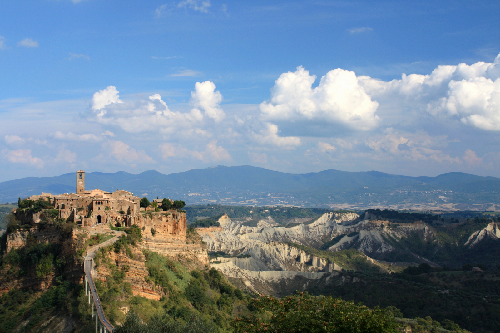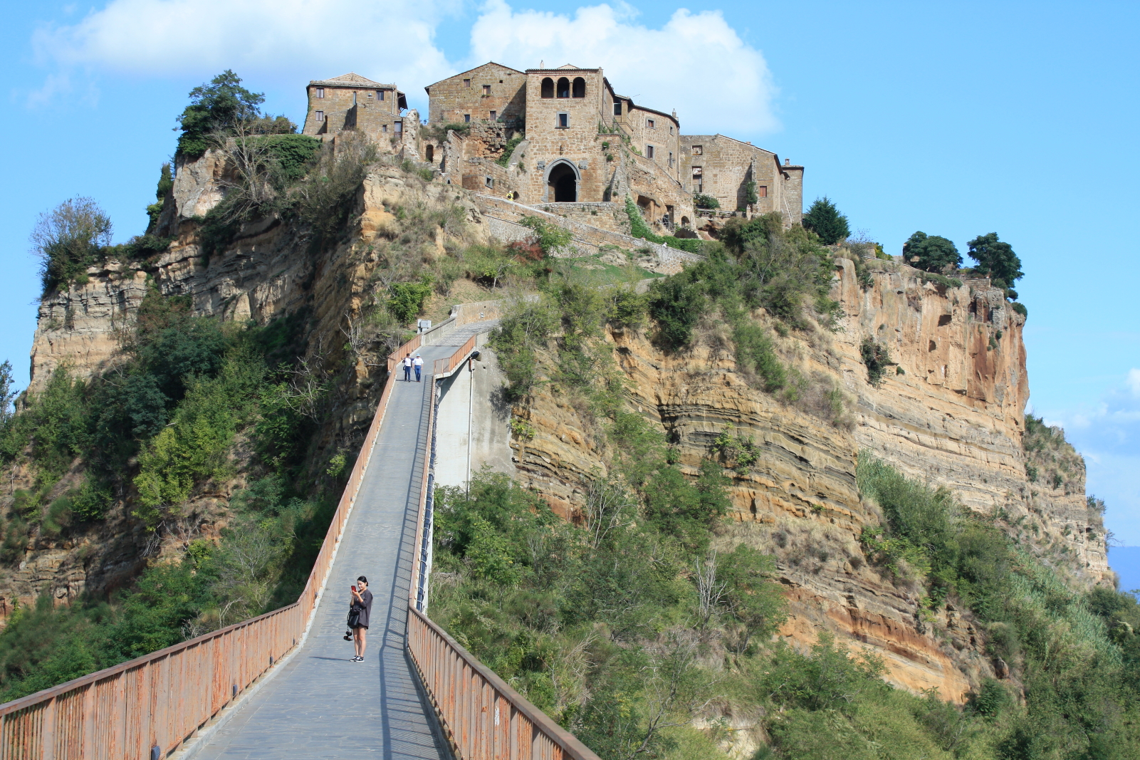 CIVITA di BAGNOREGIO – Uno splendido paesino, arroccato su uno spuntone di Tufo con pareti a strapiombo che con il tempo e l’erosione si stanno assottigliando. Ne avevo sentito parlare già da anni, più da stranieri che da italiani… ed in occasione della visita ho avuto la medesima impressione: gli stranieri sembravano più degli italiani, curioso! Bella e scenica la vista sul paesino dalla collina prospicente. Al borgo vecchio ci si può arrivare a piedi, percorrendo una passerella in muratura che raggiunge l’ingresso. Ero in viaggio per motivi di lavoro ed avevo un appuntamento in zona Tivoli quindi non ho potuto fermarmi abbastanza da visitare anche il Borgo in alto, lo rifarò alla prima occasione.