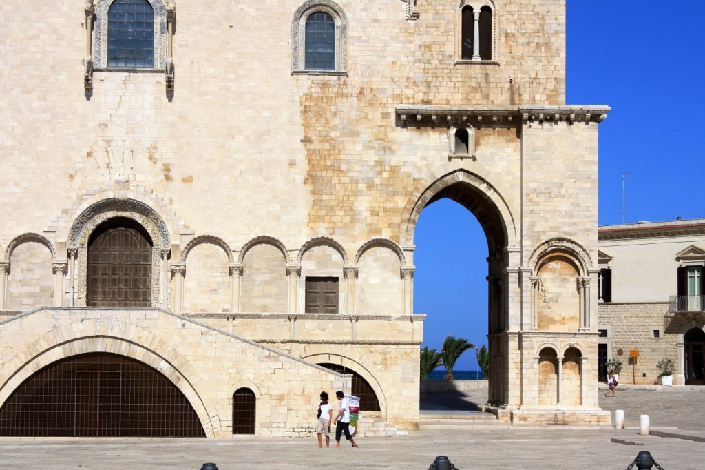 Abbiamo cambiato una delle macchine da un mese e decidiamo di provarla. Domenica mattina, partiamo al mattino presto, arriveremo a Trani per le 16 circa con 38 gradi! È metà luglio, io odio il caldo. L’alberghetto, prenotato tramite un noto sito online, sulla base delle informazioni da questo pubblicate, si rivela pietoso con l’aria condizionata scomparsa. Una doccia a temperatura ambiente e via a guardare le bellezze per distrarci. Un giro attorno al Monastero Santa Maria di Colonna, poi lungo la Baia del Pescatore e giù lungo il lido, prima di rientrare all’albergo. La levataccia mattutina, gli 860km, il caldo hanno lasciato il segno! Rientriamo a riposare una mezz’ora prima di uscire per cena. “Mare uguale Pesce” pensiamo, non come quello di Laguna delle nostre zone, pesce di mare. Sarà stato di mare, ma…. sarebbe stata meglio una bistecca! Passeggiando sul lungomare leggiamo sulla porta di un ristorantino “nuova apertura”, di solito le nuove aperture sono ben invitanti, si, ….. di solito! Ci fanno accomodare dove vogliono loro nonostante il ristorante sia vuoto dicendoci che i tavoli sono riservati, insistono per recitare il menù dandomi la sensazione di proporre cosa loro vogliono, senza fornire informazioni dei prezzi, al contrario agli unici 2 clienti che arriveranno dopo di noi, proporranno cose diverse che a noi non avevano recitato. Il prezzo sarà assurdo, il pesce era pessimo: si chiamava “L’Olimpo dei Mari”, se si fosse chiamato “Montecalvo della Discarica” come sarebbe stato? Tra l’albergo e l’imitazione di ristorante siamo delusi, e dobbiamo trascorrere ancora una serata ed una notte, dormiamoci sopra che è meglio (Il ristorante mi hanno detto che è stato chiuso poco tempo dopo, selezione naturale?)