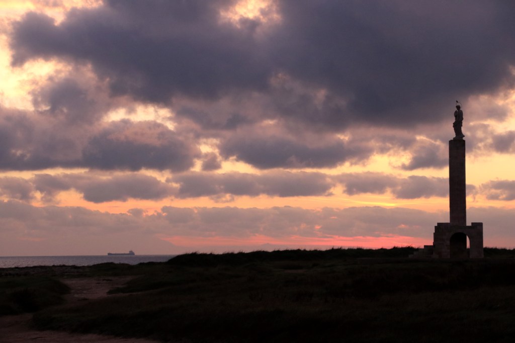 26.10 lunedì. Ci alziamo prestissimo, è ancora buio, ci prepariamo e scendiamo per andare alla scogliera. In portineria non c’è nessuno, L’ingresso è chiuso, non riusciamo ad uscire, passa il tempo e sta albeggiando, quando stiamo per arrenderci troviamo il passaggio che, attraverso la piscina, ci permette di uscire. Arriviamo alla spiaggia appena in tempo, il panorama è notevole. Dopo questo andiamo al vicino sito archeologico di Roca Vecchia prima di rientrare in albergo per la colazione, pagare e partire. Si, devo andare al mio appuntamento di lavoro, son qui per quello: sono professionale io. Appunto, lo sono IO: raggiunta la ditta vengo a sapere che la persona con cui avevo appuntamento è “dovuta” partire per l’estero, ma ha lasciato l’incarico di seguirmi ad un collega, che mi darà tutte le informazioni, ovviamente le informazioni non sono mai arrivate! “Cosa son venuto a Fare?” …forse il Turista? Allora TURISTIAMO! Passiamo per Corigliano d’Otranto, ho letto della QUERCIA VALLONEA, siamo qui, andiamo a vederla. Troviamo un cartello che la indica, ma non ci arriviamo, chiediamo in giro e nessuno sa cosa sia, prima di gettare la spugna un colpo di fortuna: la 5′ persona a cui chiedo capisce cosa cerchiamo e ci dice: “E’ Chiusa!”, grazie, ma ho chiesto dov’è, non se è aperta o chiusa! Finalmente la vediamo, da fuori perché il giardino è ovviamente chiuso. Volevamo vederla, l’abbiamo vista! eccoci accontentati! Ma cosa son Venuto a Fare? Probabilmente in Puglia si viene solo per andare in spiaggia od a cena, così decidiamo di proseguire ed abbandonarla al più presto. Deviando per Taranto. Licia mi ha spesso descritto la Puglia, io, più avvezzo a paesi “nordici” l’ho sempre presa in giro dicendo che non ci sarei mai andato, il tutto scherzando con battute “Nord/Sud”: con lei si può, anche perchè le controbatte sempre in modo fantasioso! Questa volta niente battute, voglio farle uno scherzo: Arrivati a Taranto faremo nostro primo “Selfie”: Noi due ed alle spalle il Cartello che indica TARANTO. Invio la foto sottotitolando “Aiuto, ho sbagliato strada, la bussola dev’essere difettosa!” La rispostaccia di Licia ed i suoi “improperi” sono stati come sempre sagaci. Sosta sulle sponde del Mar Piccolo, poi terribile visione dell’ILVA: ci passiamo velocemente davanti (è meglio dire “sotto” od “attraverso”) per toglierci di qui prima possibile. Bella la Puglia? Forse, ma non qui! Preferiamo proseguire velocemente verso Matera