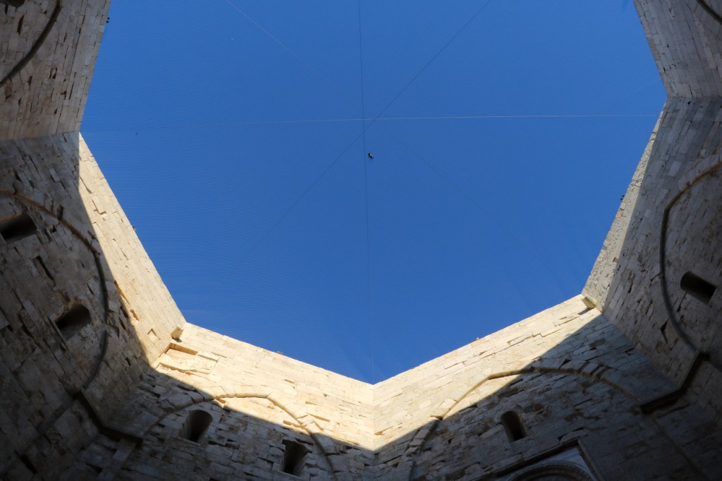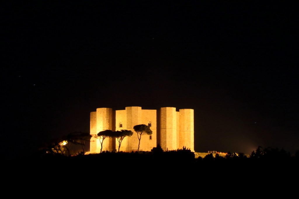 24.10 Sabato La storia si ripete: un collega mi ha consigliato un suo fornitore ed in fiera ho incontrato alcune persone di questa ditta. In fiera non si può parlare molto, oltretutto devo vedere come opera la ditta, ci accordiamo, fisso l’incontro da loro, in Salento, e partiamo. E’ sabato, il fine settimana sarà turistico, lunedì avrò l’appuntamento, poi andremo a visitare Matera prima di tornare a casa. Anche questa volta, come nel 2012, la macchina è nuova, ritirata in Agosto l’abbiamo inaugurata andando a Berlino. Ora si va in direzione opposta: dopo 860 km saremo a Castel del Monte, quello della monetina da 1 cent! Questa volta lo visitiamo e pernotteremo in una B&B ai suoi piedi che ora non esiste più. Interessante la visita, spoglio, ma interessante, bello il panorama verso la costa. In pochi minuti raggiungiamo la B&B gestita da una giovane coppia che ha anche organizzato la cena, per noi ed una coppia Olandese. Dalla finestra del salone una bella vista verso il castello illuminato, dopo cena uscirò a fare qualche foto notturna… ascoltando i cinghiali nei dintorni.