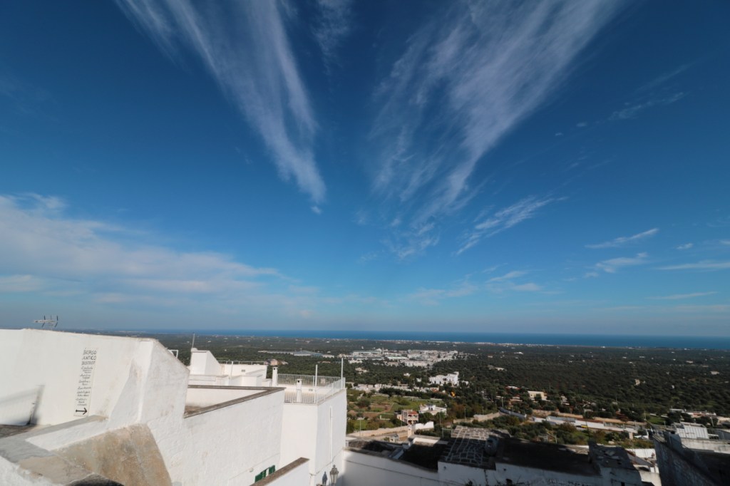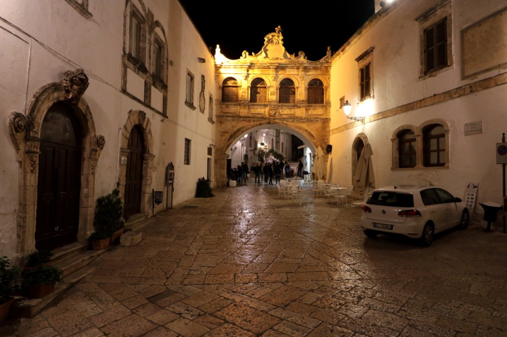 4.11 Sabato. A volte tornano, per meglio dire, ci ricascano. Da alcuni mesi, un nuovo collaboratore della ditta che avevo visitato due anni prima sta insistendo per incontrarci in ottica di una collaborazione, nel frattempo ho conosciuto persone di una seconda ditta che mi paiono più affidabili. Entrambe hanno prodotti interessanti e si potrebbe fare qualche cosa di buono, ma l’unico modo per verificare è metterli alla prova e vedere di persona la produzione ed il modo di lavorare. Due piccioni con un viaggio! Partiamo di sabato, sarà un fine settimana turistico, questa volta visitiamo Ostuni. Partenza mattutina come già nel 2012 e 2015 ed arrivo a metà pomeriggio, dopo 930km. Lasciamo la macchina al posteggio in Via Tommasi come ci hanno suggerito dalla B&B da dove ci raggiungono per accompagnarci. La B&B è vicina, quasi un “Albergo diffuso” come diciamo da noi. Ci assegnano una stanza grande e ben arredata ingresso direttamente sulla strada e dall’ingresso si scende alcuni gradini è la B&B I 7 ARCHI. Sarà un bel fine Settimana, bel tempo, splendido paesino. Decido che la mattina seguente voglio fare delle fotografie all’alba, quindi partiamo alla ricerca di un punto panoramico adatto, lo troverò sulla Via dei Colli. Rientrati al posteggio iniziamo la visita di Ostuni trovando subito la chiesa di San Vito e dove entriamo, c’è anche il MUSEO DELLE CIVILTA’ PRECLASSICHE, entrambe molto interessanti chiesa e museo. Prendiamo informazioni e decidiamo che il giorno dopo andremo a vedere anche il PARCO ARCHEOLOGICO poi ancora in giro per i vicoli, per cena ci inciampiamo in un ARCO, quello DEI SAPORI. Il ristorante sarebbe anche bello, ma il servizio è confuso, offre un sottofondo di Radio e TV insieme entrambi ad alto volume, dalla saletta accanto i piatti che viaggiano di tavolo in tavolo prima di atterrare a quello giusto…. Speravo altro, la passeggiata serale sarà meglio, molto meglio.
