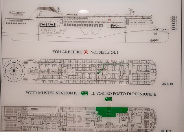 Ci siamo concessi una passeggiata panoramica lungo i corridoi del 9’ ponte e poi a nanna, dopo aver ammirato dall’alto il porto di Livorno e le luci della città che si allontanavano