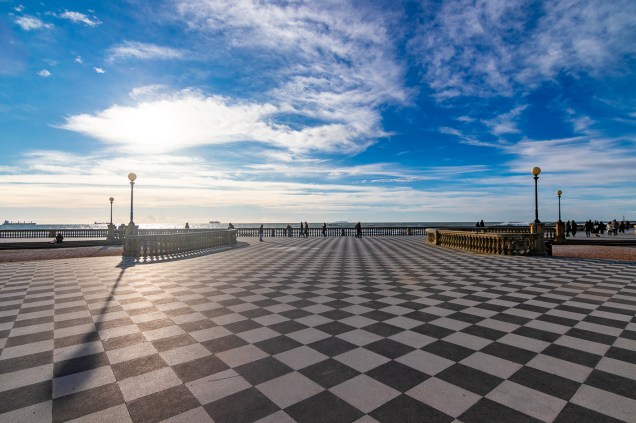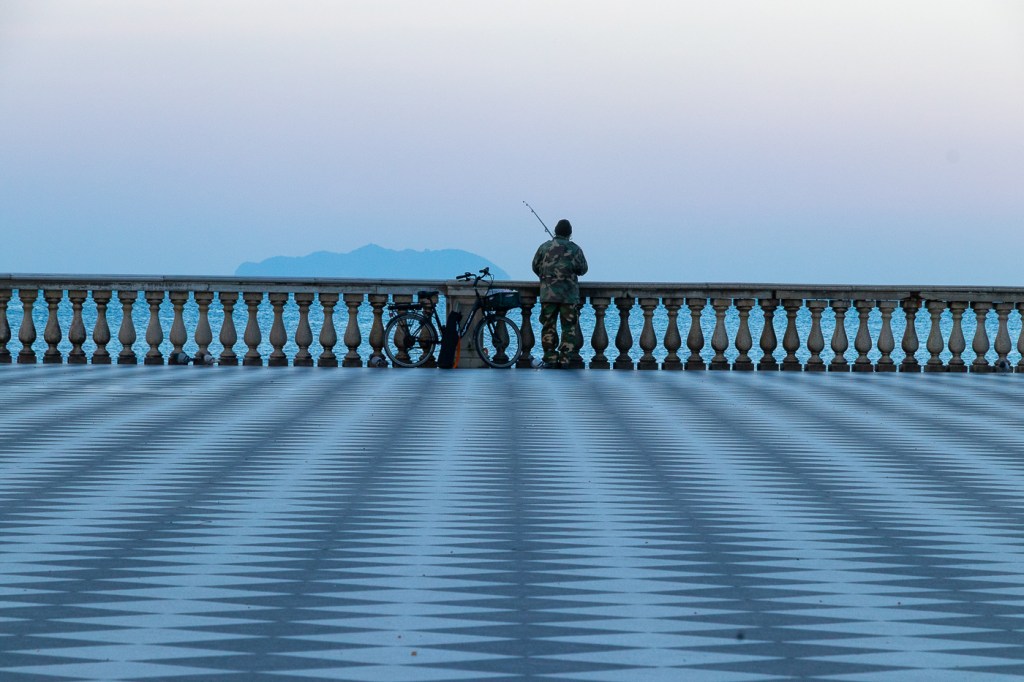 21 Gennaio martedì Vedo le luci della costa toscana mentre lentamente il cielo inizia ad albeggiare, poi il messaggio, di lasciare le cabine, così ci traferiamo al ponte 9 per un Cappuccino in attesa dell’attracco. Scendiamo velocemente e ci avviamo verso la zona della Terrazza Mascagni; non c’è vento, sopra è sereno, ma sulla terraferma le nuvole sono ancora fitte.