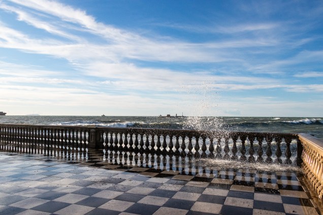 10 Gennaio sabato Con estrema calma siamo arrivati a Livorno verso le h 14 ed abbiamo fatto il pieno prima di raggiungere la Terrazza Mascagni per una passeggiata ventilata e soleggiata, rallegrata da spruzzi d’acqua salata, poi una cioccolata calda in un caffè prima di raggiungere l’imbarco dei traghetti.