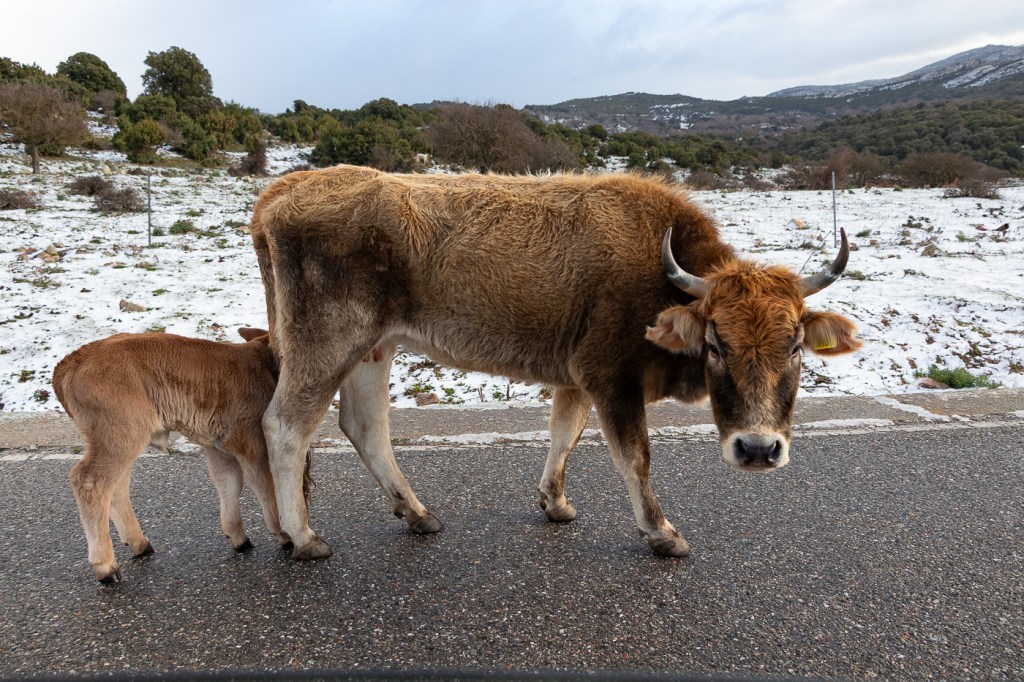 Lascio quindi la statale per raggiungere le Piscine di Bau Mela, incontrando tranquille mucche che allattano vitellini in mezzo alla strada o che brucano i bordi della stessa, “concimandone” l’asfalto.