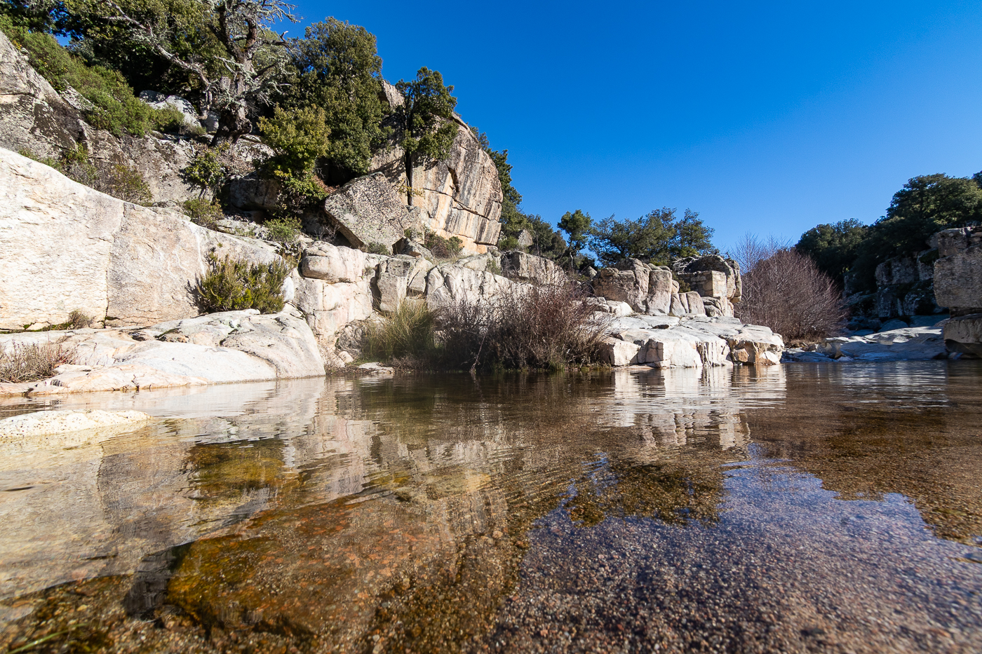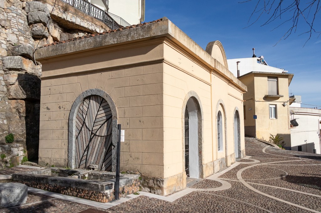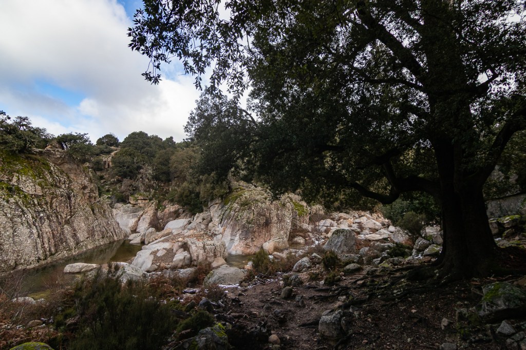 Faremo una prima breve sosta a Villanova di Strasili dove ci “fermano” un paio di murales sulla piazza San Basilio … raggiungiamo quindi la Pischina Bau Araraduli per una breve passeggiata ed una rapida scivolata! Mi sono distratto: suggerendo il percorso migliore ad Assunta e, concentrandomi su di lei, non ho notato che una piastra di granito sulla quale passavo aveva il velo di brina ghiacciato, quindi, con una coreografia improvvisata di movimenti plastici e scoordinati nel cercare di proteggere le macchine fotografiche… le ho salvate! … loro😊! Poi giù ancora, sino all’acqua che, con il cielo limpido ed il sole, è bellissima e trasparente.