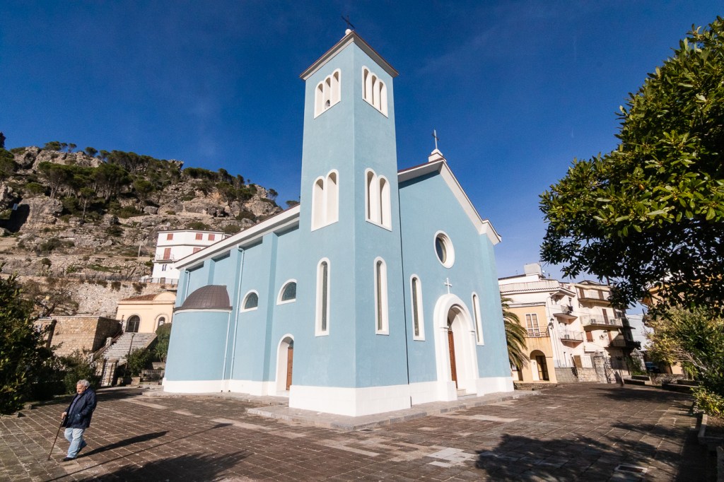 In un paio di occasioni mi sentirò al telefono con Assunta… Io ho capito più o meno come funziona, lei li attende, insieme ad un’enormità di altri turisti estranei al Paese ed alla Tradizione, presso la chiesa Signora di Loreto, in centro paese, ma anche spiegandole dove andare, non riesce ad uscirne.