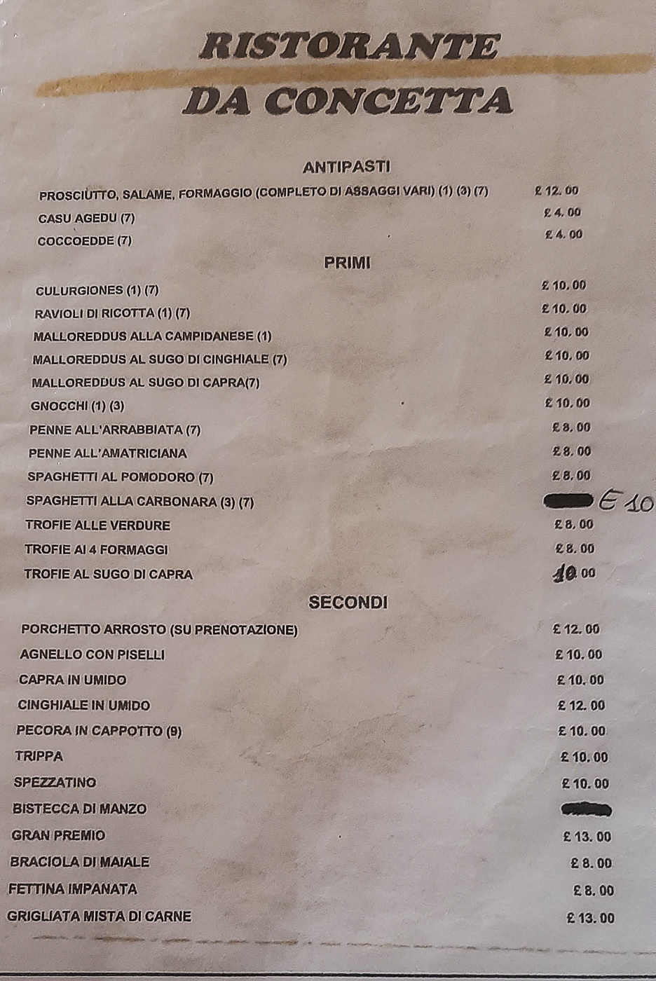 20 Gennaio martedì Questa mattina salutiamo la gentilissima Pasqualina, la padrona di casa da Su Hantaru Vetzu dove abbiamo trascorso 6 notti. Ci regala anche una Bottiglia di Cannonau (lo berrò a casa e sarà ottimo). Prima di partire passeremo al negozio LA ROSSA (oltre che Enoteca è anche Negozio) dove acquisteremo Formaggi sino a riempire il frigo portatile, poi Birra artigianale colmando ogni piccolo spazio rimasto in bagagliaio prima di avviarci. Vorrei tornare, Sono stato benissimo da Pasqualina, ci è piaciuta l’accoglienza da Atzeni, le cene da La Rossa e la Pizza, ho scoperto che a Ottana ed Orotelli ci sono delle tradizioni altrettanto interessanti e tornare a Mamoiada non mi dispiacerebbe, ma se devo trovare locali pubblici che usano gli orari per tappezzare pareti, anche no. La strada per Olbia scorre piovosa sotto la macchina, non lunga, ma piovosa, poi pasticceria che pensavo di trovare al Centro commerciale Terranova oggi e chiusa. Non piove più, ma tira vento così ci sediamo ad un caffè, acquistiamo ancora qualche cosa di pronto per cena al supermercato poi raggiungiamo il porto, e saremo tra i primi ad imbarcarci, ceneremo prima di andare al bar per un digestivo, poi convincerò Assunta a tornare in cabina a cercar di dormire: è preoccupata per le raffiche di vento. Si convincerà poi, che 237m di Moby Fantasy da quel vento verranno semplicemente spolverati. Buonanotte!