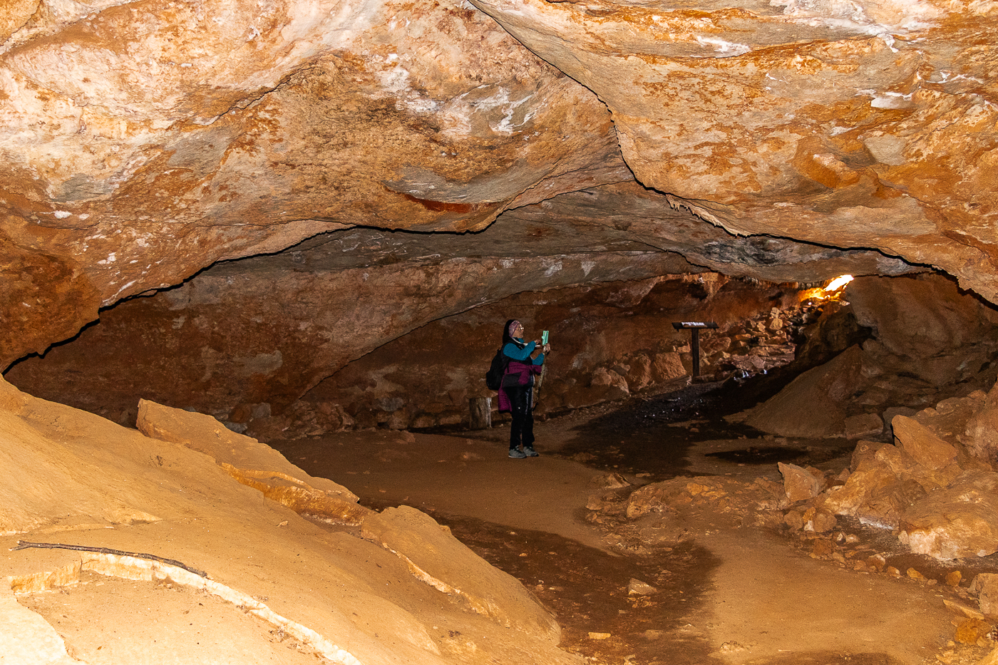 La salita al Nuraghe Serbissi è facile, basta avere calzature adatte, l’aria è un po’ freschetta al mattino con i -2 gradi alla partenza ma ci scaldiamo camminando; giunti alla parte alta troviamo qualche rimasuglio di “simil-neve” e un po’ di fango sul sentiero, cosa che ci rallenta per la preoccupazione di Assunta di scivolare. Quasi giunti al Nuraghe che sorge in un ambiente già di per sé splendido con panorama a 360°, scopriamo al di sotto di questo, ciò che non ci aspettavamo: la Grotta Serbissi! Affascinante, ampia, facile da percorrere, ha 2 uscite; si snoda proprio sotto la cima su cui sorge il Nuraghe. Poi raggiungiamo il nuraghe e ci offriamo al sole come lucertole ammirando il panorama. Per la discesa decidiamo di attraversare la grotta, entrando dall’imboccatura Est, ed uscire da Ovest riprendendo il sentiero da cui siamo saliti. Tutto il giro lo abbiamo fatto comodamente in 3 ore, soste incluse.