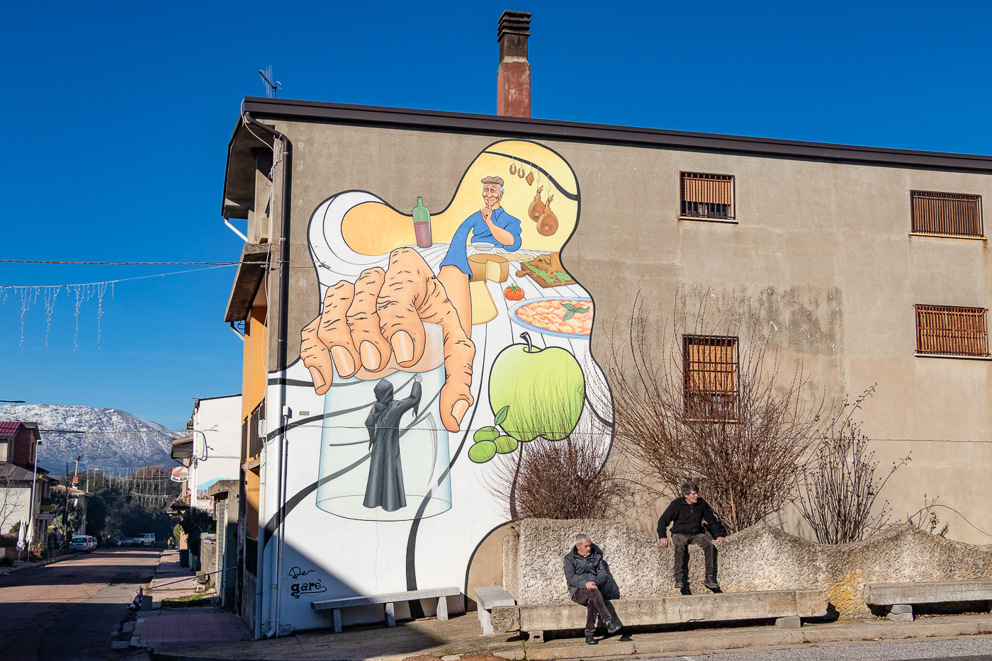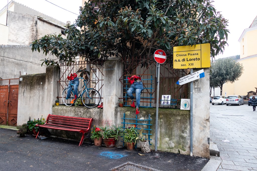 Ci rilassiamo la mattina, con una breve passeggiata salendo e scendendo per le stradine di Mamoiada, fotografando scorci interessanti e cercando altri falò, prima di spazzolare, come pranzo, un tagliere ad un negozio di Souvenir e stuzzichini, l’ASSANTHIA.