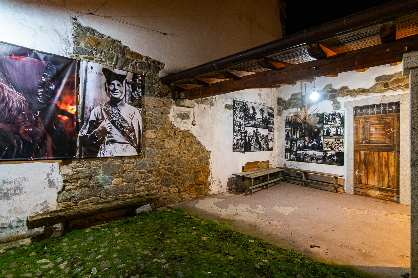 La “vestizione dei Mamuthones” è una cerimonia riservata, in pochi accedono (all’altra associazione mi han detto funzionare diversamente, dove molti accedono per poco tempo ed in zona limitata), qui pochi accedono, ma si possono muovere nel rispetto reciproco e soprattutto della Tradizione: si accede ad alcune aree solo se accompagnati: siamo Ospiti, in “casa d’altri”! Non conosciamo la tradizione, io in particolare sono qui per Osservarla, Viverla e cercare di capirla, immortalarla in fotografia; Dolphin, giornalista Francese, è qui per lavoro, Peter, fotografo Sudafricano pure, sono gli unici con cui ho rotto il ghiaccio. Con gli altri 8/10 non faccio in tempo, siamo tutti presi, chi a Fotografare, chi a Filmare in molti cerchiamo di non impallare le fotografie degli altri. Dopo un’ora abbondante la vestizione termina e tutti, Mamuthones e Issohadores si dispongono nel cortile recintato, attorno il falò acceso, a provare prima della partenza… i fotografi al di fuori dal “cerchio”, concentrati sul soggetto. Ho cercato raccogliere informazioni su come si snoderà il percorso, su come mi devo tenere rispetto agli “Interpreti Principali” senza grandi indicazioni, ma con molta cortesia. Un po’ di cose le inizio a capire da me! Quello che non ho capito ancora non lo immagino neanche!