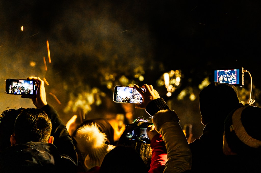 Ai falò ci passano, sostano brevemente, quindi proseguono verso il prossimo. O ti muovi con loro, o li aspetti ad una delle soste. Io voglio fotografare e li seguo, li precedo, li affianco, li ammiro! Ho perso il conto dei falò quando, percorrendo via Asiago, Assunta mi scrive che è all’affittacamere, e, dato che è vicina decido di raggiungerla. E’ già l’ora blu! Sono stanco ed ho fame. Se io sono così cotto, mi chiedo, come sono loro, con i 30/40kg di Vestiario e Campanacci che saltano come stambecchi (o meglio dire Mufloni) attorno ad ogni Fuoco dalle ore 15? Capisco ancora meglio il valore che ha per LORO questa TRADIZIONE.