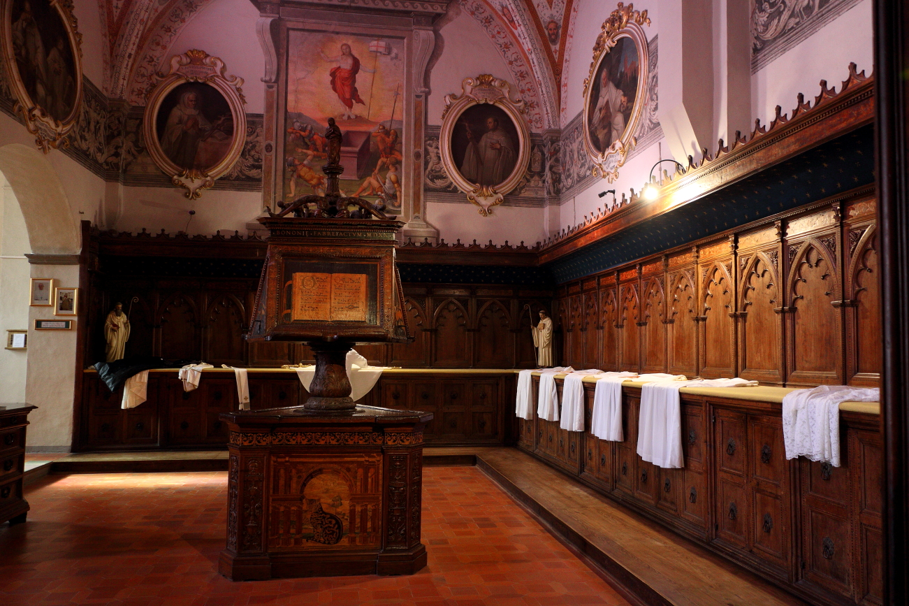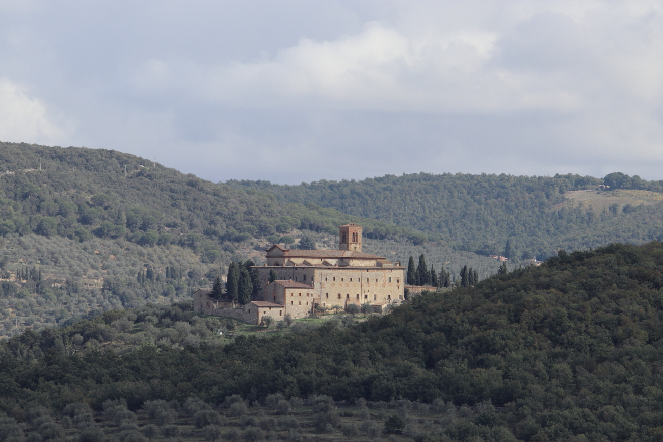 MONTE OLIVETO MAGGIORE – L’Abazzia la si può raggiungere a piedi, dall’abitato di Chiusure sono un paio di km, per chi preferisce arrivarci in macchina, prima dell’ingresso ci sono alcuni posteggi, quello all’ingresso è gratuito negli orari delle funzioni. L’abbazia si vede dal paese che si trova su una collina più in alto. E’ stata ristrutturata dopo, ristrutturato dopo periodi di abbandono.Molto bella la Sala del Refettorio, Interessante la sala della Farmacia ricavata nella Biblioteca, interessanti gli affreschi nel chiostro che conduce alla chiesa, nella quale da ammirare la Sacrestia con il leggio in legno che si vede al centro e le stupende le lavorazioni ed intagli delle sedute nella chiesa; e che dire delle funzioni? i Vespri e la Compieta a cui ho assistito, sono le Funzioni Religiose che da sole valgono la visita, funzioni celebrate dai Monaci che intonano Canti Gregoriani, alle quali è possibile assistere, senza dimenticare che sono Funzioni Religiose. All’esterno della chiesa, un vialetto alberato conduce al Cimitero dei religiosi, passando davanti alla struttura. Nella struttura è possibile pernottare in un apposito settore della foresteria, accordandosi con la Congregazione. Prima della chiusura una visita al negozio dell’Abbazia è per me un obbligo, per uscire dopo aver acquistato le Caramelle e il “Flora” prodotti dai Monaci.