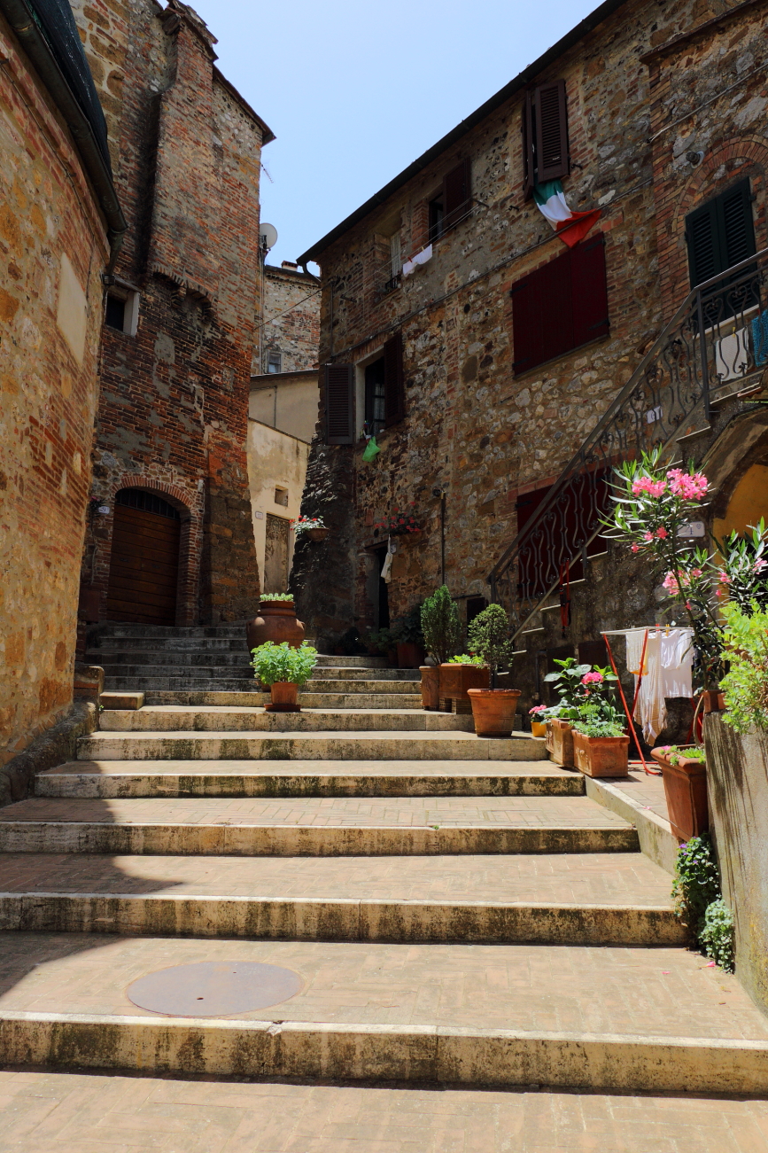 Suggerisco di proseguire a sinistra, raggiungendo dapprima PETROIO e poi proseguire sino a MONTEFOLLONICO sono entrambi dei piccolissimo borghi, arroccati su delle colline, con dei centri storici dove merita passeggiare in tranquillità osservando gli scorci dei vecchi edifici.