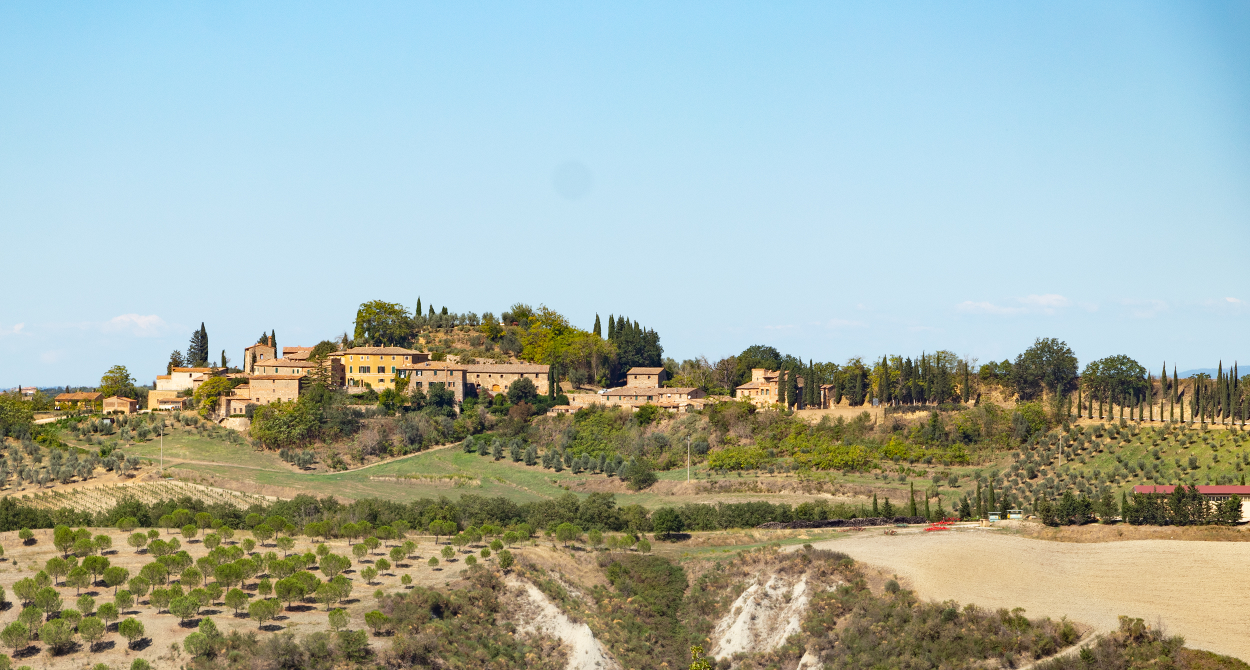La Val d’Orcia è una delle zone della Toscana che preferisco, In questa includo in modo grossolano la zona compresa tra Arbia, Rapolano, Sinalunga, Pienza e Buonconvento. Zona che visito spesso per motivi di lavoro, solitamente pernottando a Rapolano o nella zona di Monte San Savino, in alcuni casi per due o tre notti a Chiusure, nel comune di Asciano.A Rapolano Terme o Serre di Rapolano non ho mai dedicato molto tempo, ho invece conosciuto Chiusure, per visitare l’Abbazia di Monte Oliveto Maggiore cercando anche l’occasione di partecipare ad una funzione religiosa dei Monaci Benedettini che intonano Canti Gregoriani. Nel settembre 2018 ho per la prima volta visitato l’Abbazia, e scoperto come, i dintorni di Chiusure offrano paesaggi stupendi e paesi belli e fuori dal mondo, primo tra tutte il borgo di Chiusure.
