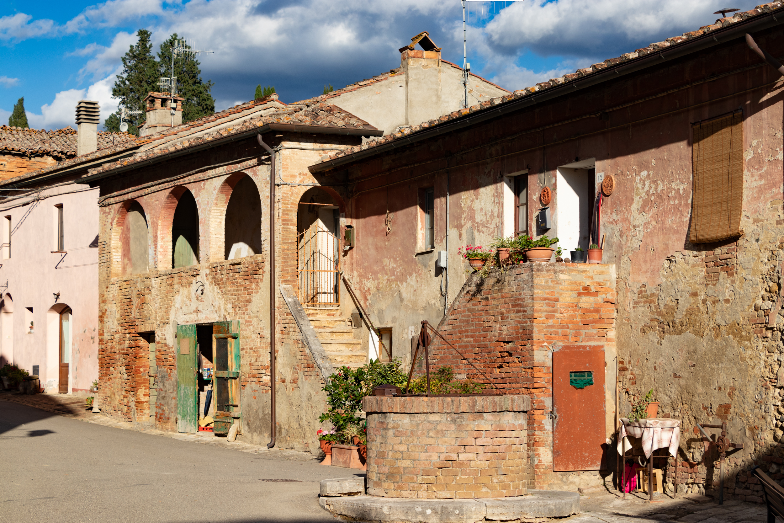 CHIUSURE – Piccolo e splendido, borgo in Comune di Asciano. Da quando l’ho scoperto cerco di tornarci ad ogni occasione e per lavoro di occasioni ne capitano! Il monastero di Monte Oliveto Maggiore è la struttura più frequentata mentre il Paese è la struttura più mi piace, gli abitanti sono quelli che la rendono così. Mangiare un panino alla bottega di generi alimentari chiacchierando con la titolare rilassa, così come è stato divertente, alla prima occasione, sedersi ai tavolini del negozio, assieme ad abitanti ed una signora “naturalizzata” e sentir raccontare gli aneddoti legati ad un film girato negli anni Sessanta. Buono è cenare alla Locanda PARADISO od alla TERRAZZA e poi, dopo cena, passeggiare fino al Giardino che dal punto più alto del paese offre un panorama che spazia dall’Amiata, ad Asciano, passando per Siena, il tutto prima di rientrare a riposare all’agriturismo LE PIAZZE, in attesa della prima colazione, con cui iniziare la mattina dopo. Altrettanto piacevole è stato l’ultimo soggiorno al PICCOLO HOTEL SAN VALENTINO ad un paio di km dal Paese, sulla strada che conduce a Buonconvento, ma isolato e circondato da vegetazione.
