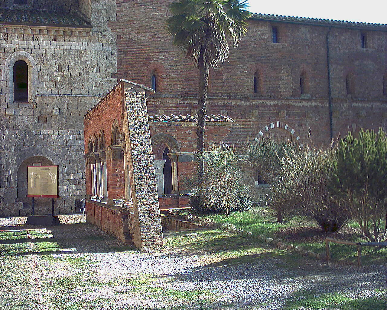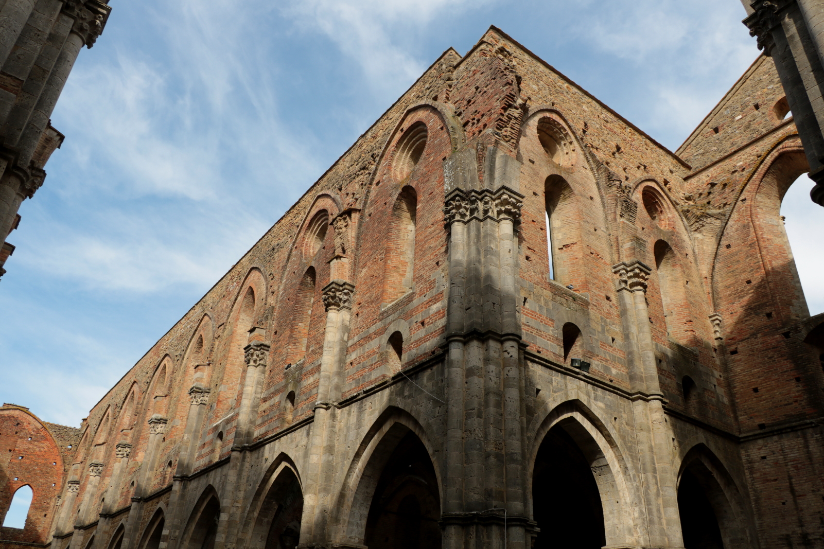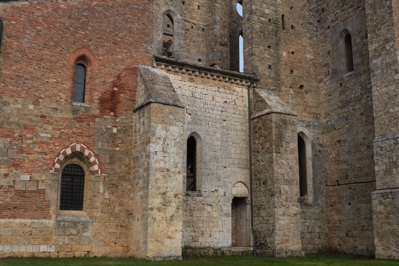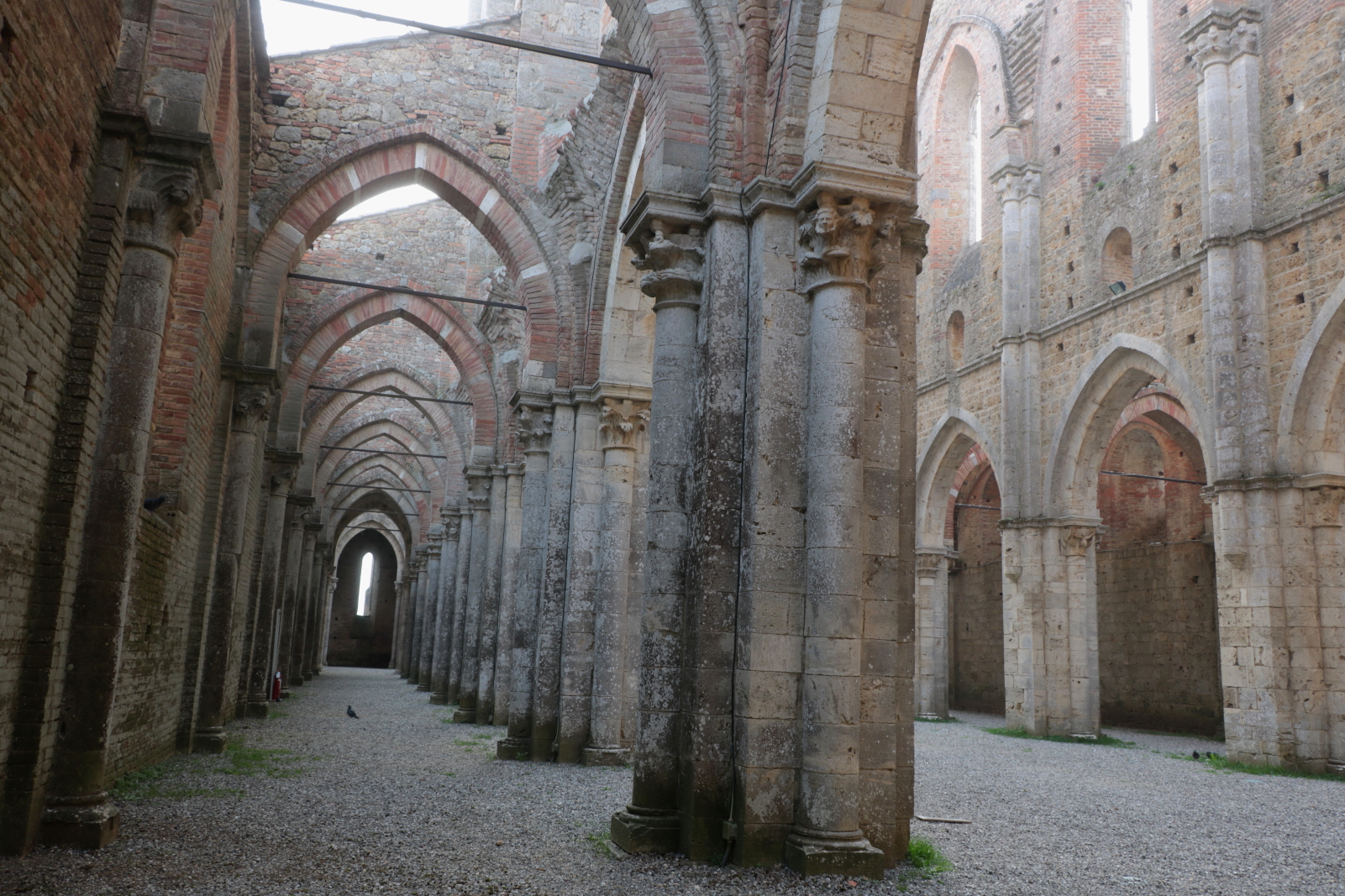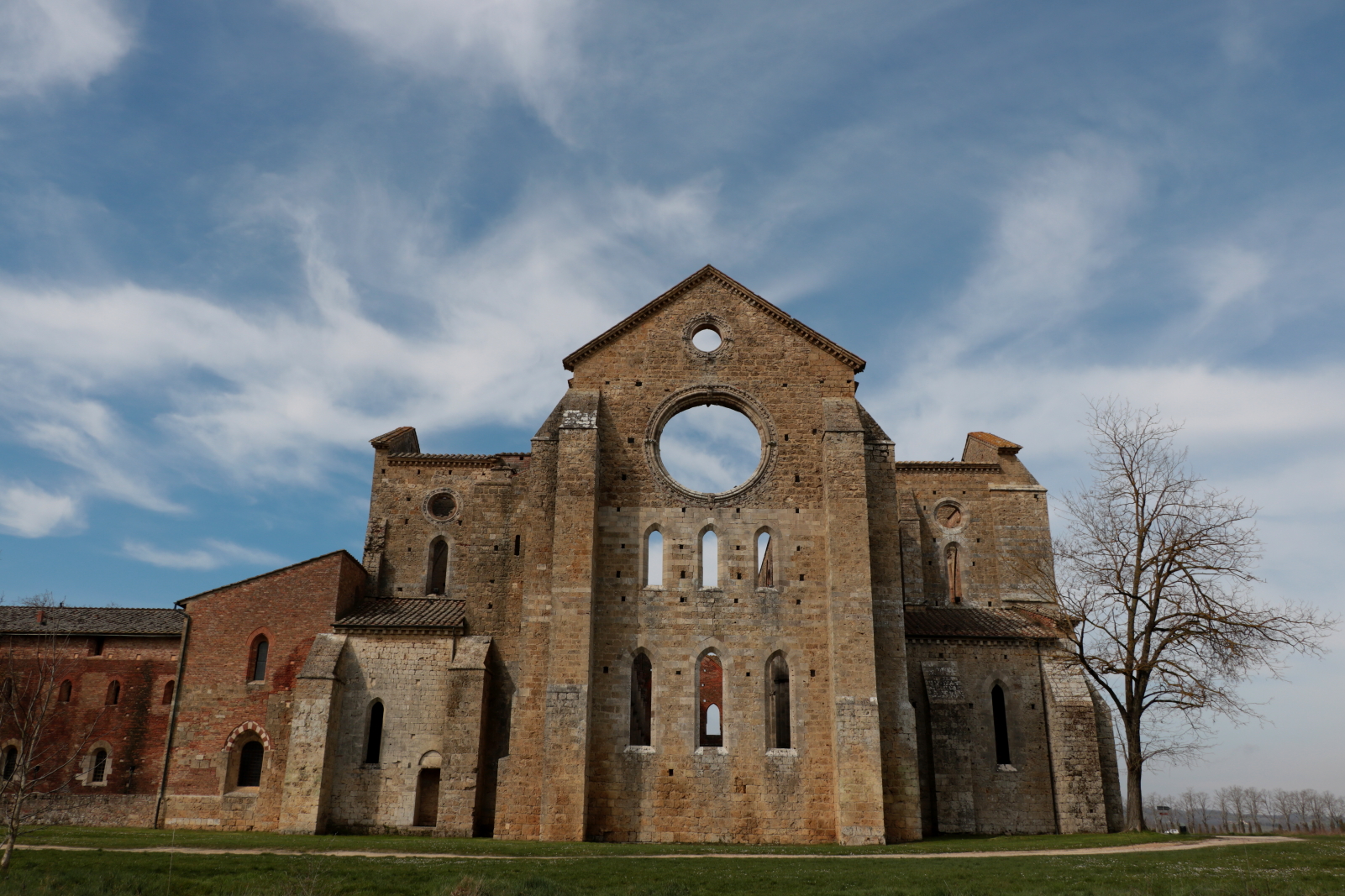 Il 27 dicembre del 1985 si sono stato per la prima volta. Avremmo trascorso il capodanno tra amici, a Firenze, ma non per questo lo ricordo la giornata, ricordo l’impressione, ascoltando alla radio al mattino, la notizia di un attentato all’aeroporto di Fiumicino; mi riportò la sensazione provata un anno prima, all’epoca eravamo li per qualche giorno prima di natale, quando un cameriere angosciato ci raccontò cos’era accaduto nella notte il 22.12.21984 al rapido 904 a distanza di un anno, notizie dello stesso tenore. Decidemmo di spegnere la radio. I due amici di Firenze ci descrissero SAN GALGANO la meta di quella giornata. Questo purtroppo è primo ricordo che associo a SAN GALGANO. Si trova a circa 35 km da Siena, se si percorre la SP73Bis. Sono i resti di una Abbazia Cistercense semidistrutta da un incendio poi abbandonata, sorge nel mezzo di uno spiazzo pianeggiante circondato da lievi colline. Nelle vicinanze l’Eremo di MONTE SIEPI con la sua “La Spada nella Roccia” e le Mani mozze, di chi avrebbe cercato di rubarla.
