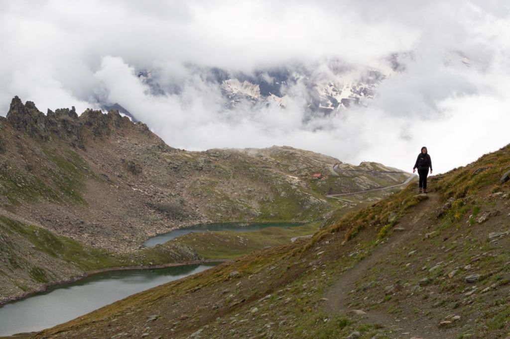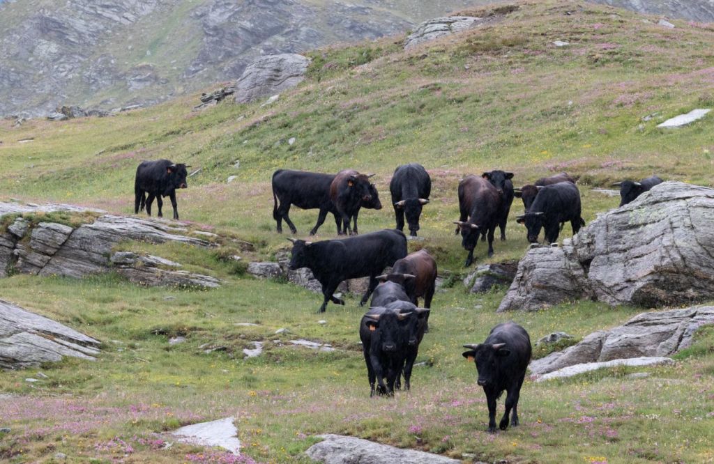 22 giugno Un Il buongiorno fu un meteo indeciso, tra il “ poi miglioro” e il “mo’ te frego” ma noi, accaldati dagli oltre 30 gradi della laguna non eravamo disposti a farci Fregare! Pioggia sul percorso verso la colazione, pioggia durante e dopo colazione, pioggia mentre indossavamo gli scarponi, i copripantaloni impermeabili ed il Poncio, pure mentre improvvisavo un “impermeabile” per Canon 1 mentre Canon 2 restava riparata nello zaino. Pioggia lungo la salita sino all’Alpe Riva dove, trovati aperti i battenti di due puzzolenti stalle, cercammo riparo. I manzi di quelle stalle però, dopo averci visto ci raggiunsero, cercando a loro volta riparo. Così proseguimmo la Fresca ed Avventurosa salita. La pioggia talvolta diradava offrendoci timidi sprazzi nelle nuvole sino a quando, raggiunto il Lago Rosset, dovemmo fermarci per impacchettare Poncho e Pantaloni antipioggia, estrarre Canon 2, idratarci e procedere sotto un cielo che si stava rasserenando ed una corona di montagne attorno a noi. Lasciammo la traccia di sentiero nei pressi dei Laghi Tre Becchi, per poi riprenderla diretti al Lago Nero che raggiungemmo attraversando “Marmotterie” e “Volatilerie”, nel frattempo Assunta riempiva il telefonino di fiori scattando in tutte le angolazioni possibili. Il Lago Nero è a quota 2750m bello, una pace indescrivibile, cinguettii attorno, volatili che probabilmente nidificavano in zona allertati dalla nostra presenza ed una scarica di sassi dalla parete sopra al lago, forse Stambecchi? Non lo sapremo mai. Come la salita, percorsi anche la discesa in prima posizione, nella speranza di avvistamenti piacevoli, procedetti con il 120-400mm montato su Canon 2, potei cosi notare in tempo una famiglia di marmotte che non mi aveva sentito (Il vento era a favore) e, sfruttando gli avvallamenti del terreno avvicinarmi abbastanza restando coperto ed avvisando Assunta della presenza degli animali; i più giovani scapparono mentre la più matura (e grossa) rimase all’aperto, rosicchiando e tenendomi d’occhio per alcuni minuti sino a quando decise di occultarsi anche lei. Mi ero deconcentrato, così, quando 100m dopo di sentiero, quando mi trovai a tu per tu con un Camoscio accovacciato a 50m da me non ero pronto. Nell’istante in cui lo vidi mi sentì a sua volta, girò la testa e mi vide (ero sempre a favore di Vento) e partì. La macchina Canon2 scattò in sequenza ma tutto sfocato ☹ … Peccato! Solo i Manzetti dell’Alpe Riva non si scomposero al nostro arrivo, rimasero li, accovacciati, a prendersi la pioggerellina che nel frattempo aveva ricominciato a cadere mentre noi, accompagnati da questa pioggerellina, rientrammo al Rifugio. 9km circa, 650m di fresco saliscendi. Apprezzammo due panini al bar per andare poi a farci una doccia e cambiarci. Gustammo appieno la cena, per poi sistemarla con Genepi e Bombardino.
