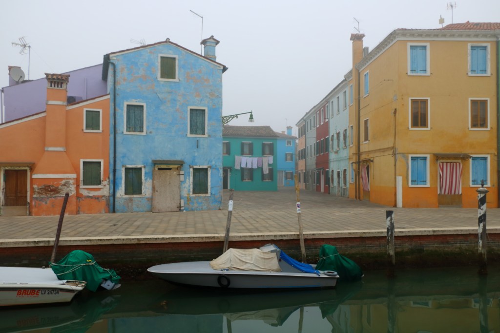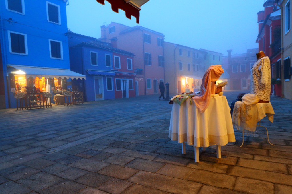 Una volta sbarcati, con una brevissima passeggiata si raggiunge uno dei canali che attraversano l’isola e ci si trova immediatamente nel colorato mondo di Burano. Non è grande, ci si può passeggiare anche senza meta e senza “Maps”: tre canali, tante calli e piazzette, difficile perdersi, facile invece trovare scorci interessanti, la piazza del mercato del pesce, od il campanile inclinato ad esempio. Gli stessi turisti sono anch’essi una curiosa “particolarità” che talvolta è interessante osservare.