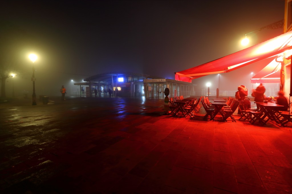 Quella giornata era carica di umidità e coperta, quindi la luce diurna non era molto particolare, ma l’effetto serale è stato speciale apprezzato ancor di più con una piacevole passeggiata nella nebbia.