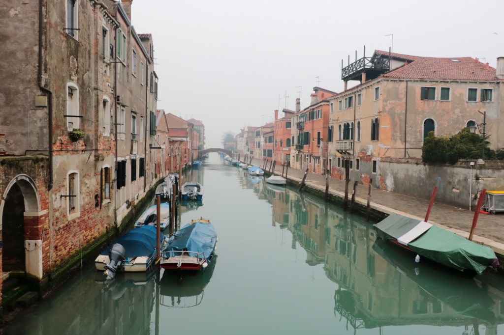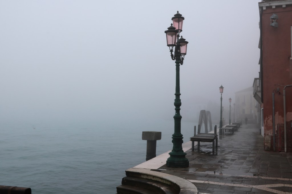 07.01 Giovedì – Ci alziamo riposati e dalla terrazza constatiamo che la giornata è nebbiosa, No Problem! La colazione è ottima. In Vaporetto da san Marcuola ci dirigiamo verso la BASILICA DEI FRARI, è una delle mie preferite da sempre: splendido il Coro, interessanti le tombe monumentali poi proseguiamo diretti al Canale della Giudecca, per strada troviamo anche uno squero che non conoscevo. Attraversata la Giudecca pranziamo al PONTIL DEA GIUDECA, una piccola trattoria con piacevole sottofondo in dialetto Veneziano! Rifocillati proseguiamo alla volta del Redentore e poi di nuovo in Riva degli Schiavoni, in tanti anni che ci vengo è solo la seconda volta che trovo nebbia, devo immortalare l’effetto.